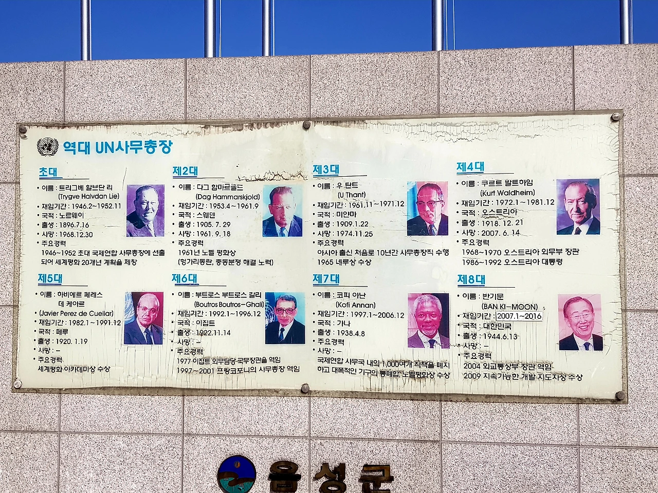 또 지구본을 빙 둘러 여덟 분의 유엔 사무총장님들의 흉상이 전시되어 있었다