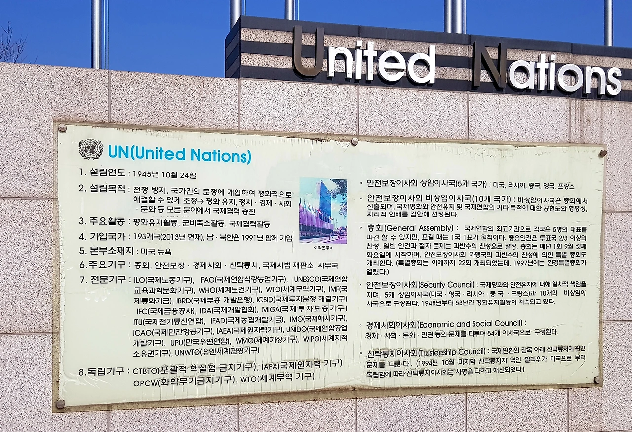 있고 줄지어 반기문총장님 소개와 유엔의 소개 그리고 반기문사무총장의 활동이야기 와 여덟 분의 역대 유엔사무총장님들을 소개하고 있었다