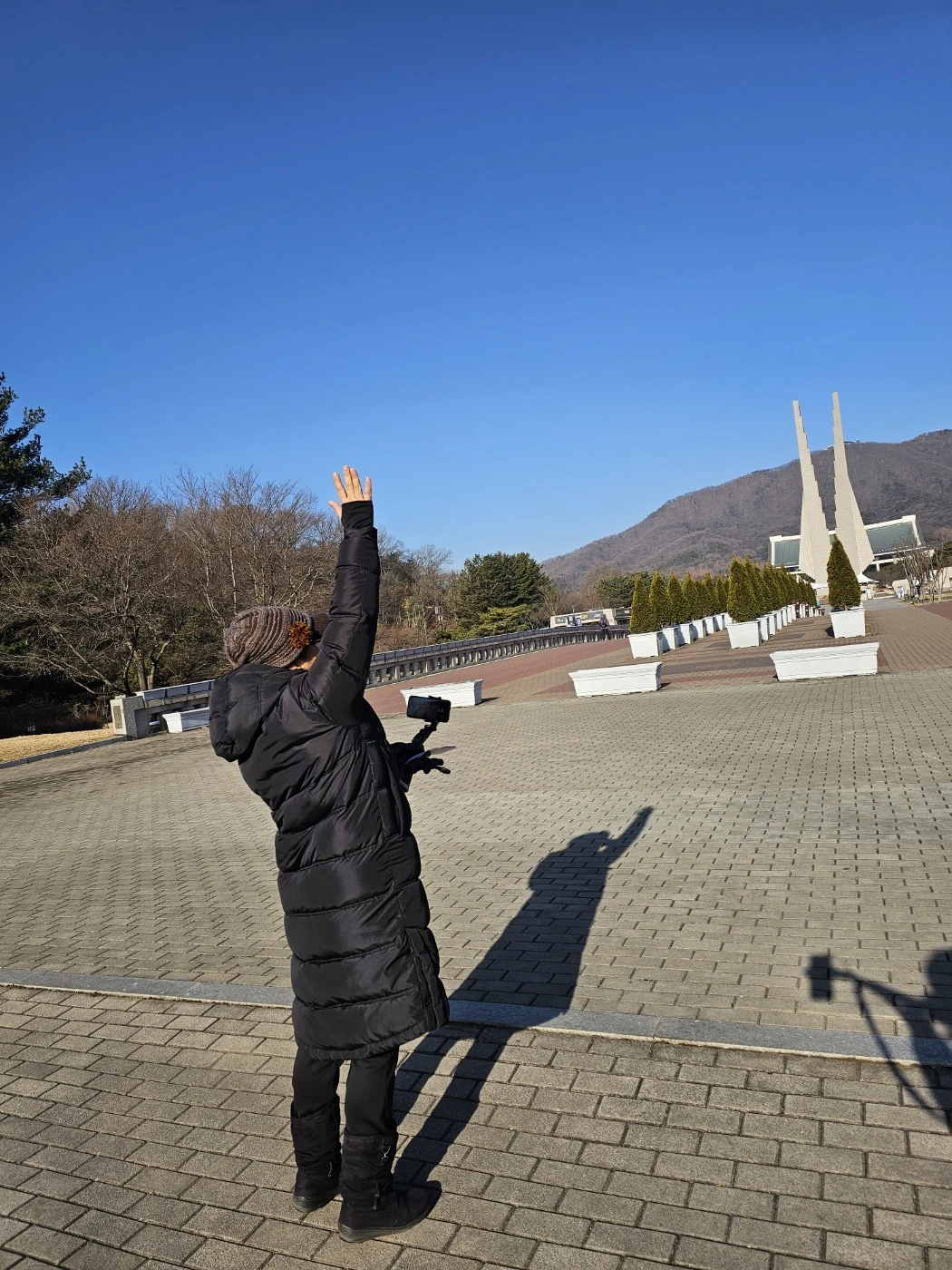 오랜만에 만난 겨레의 탑을 향해 손을 흔들어 인사를 건네고 겨레의 탑을 지나 태극기 광장 곁에 있는 광개토대왕릉비를 찾았다