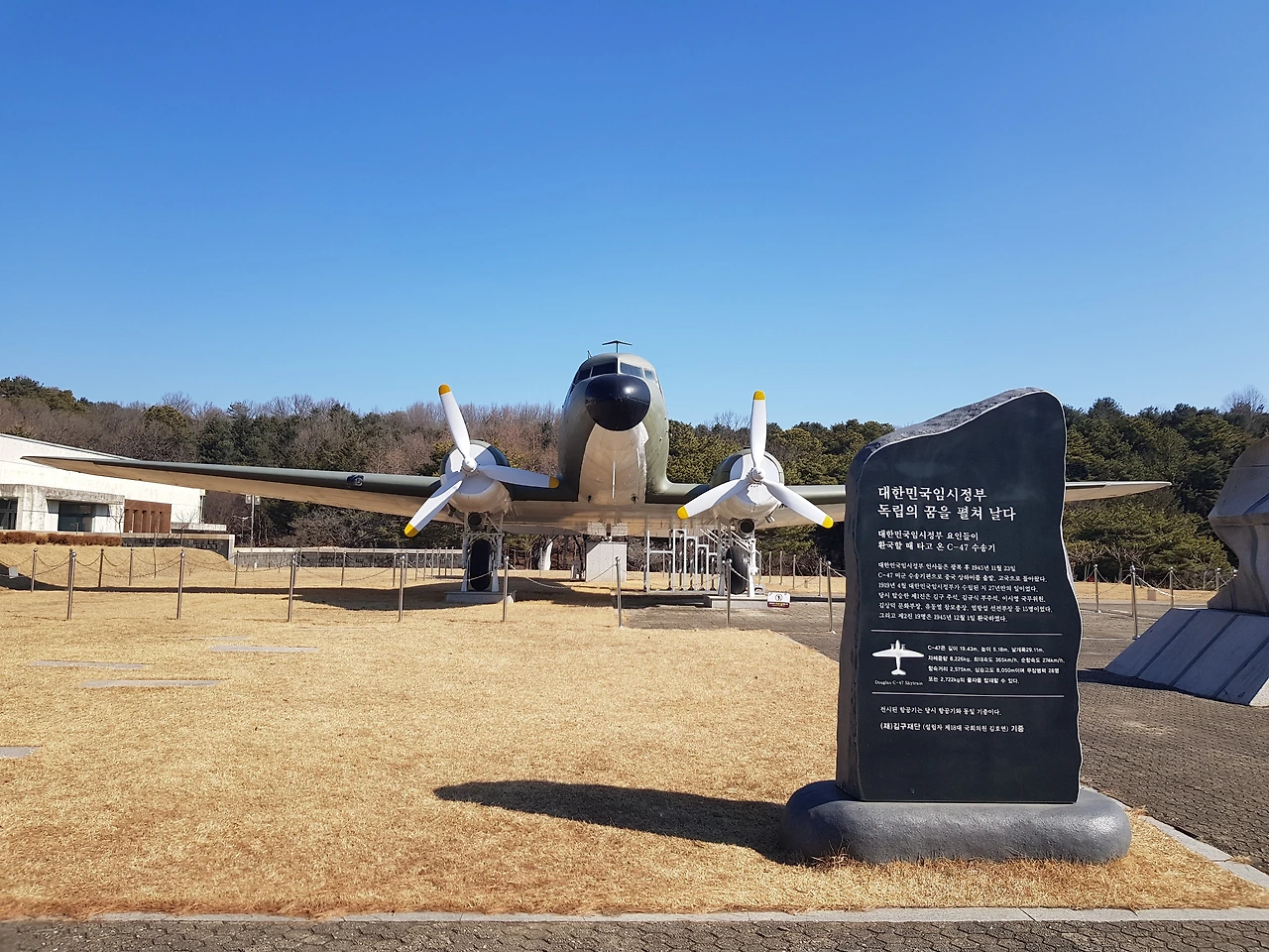 이 비행기는 임시정부 요인들을 태우고 귀국했던 같은 기종의 비행기라는 역사적인 사실을 알려주고 있었다