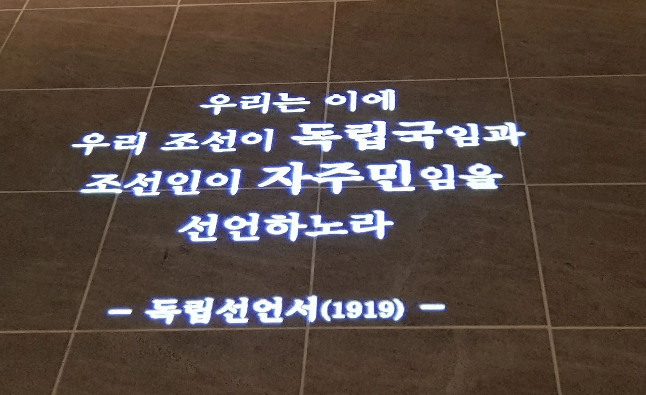 6관 입구 바닥에 띄워진 독립선언서의 글귀가 독립기념관을 둘러본 감회를 대신하고 있었다