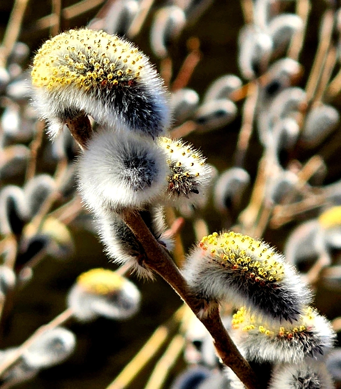 하얀 솜털 머플러에 샛노란 꽃 버들강아지