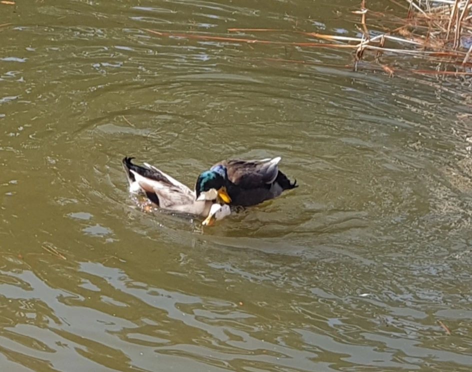 암컷오리 머리 물어 물속으로 밀어 넣고