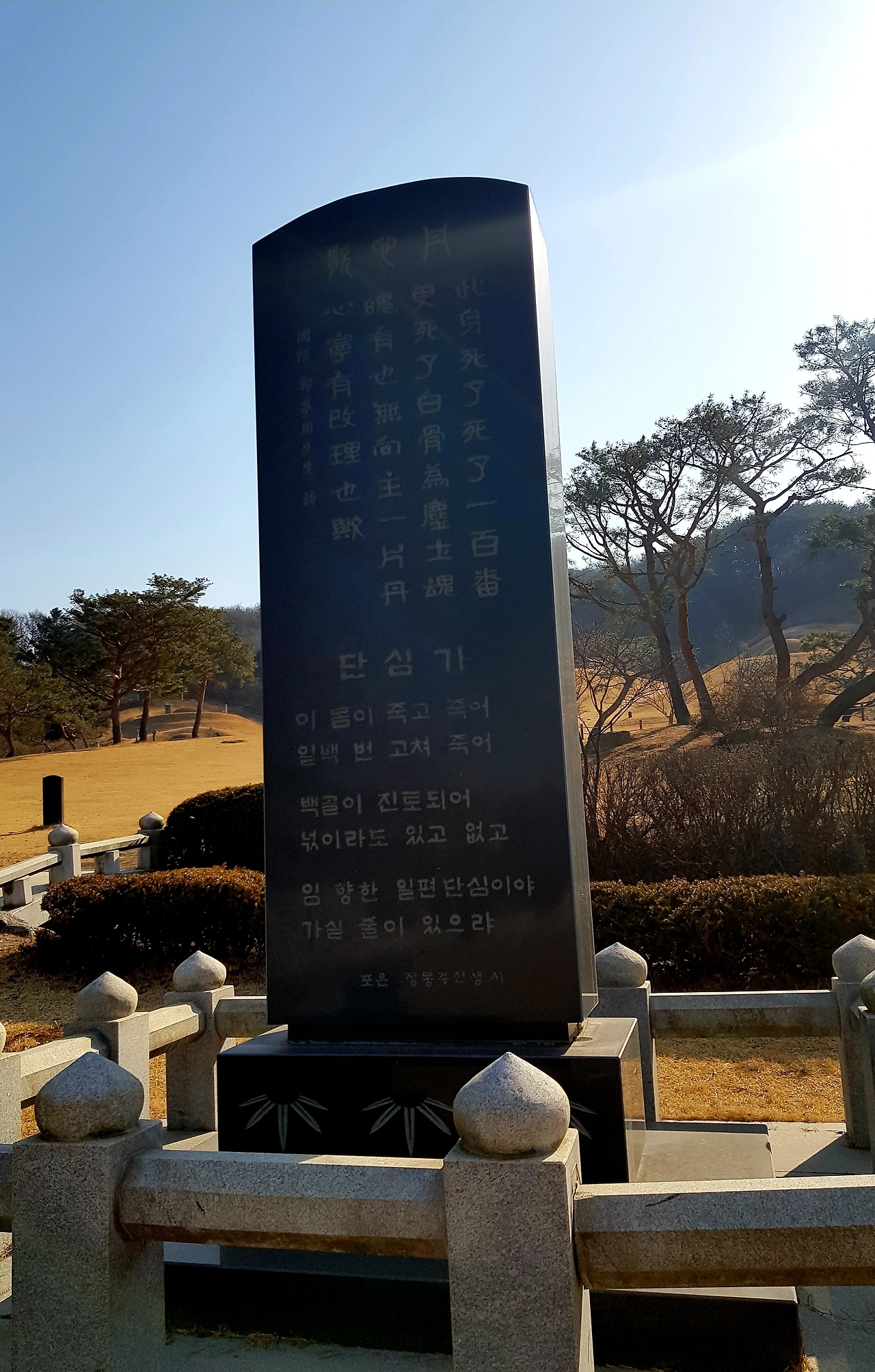묘지에 서서 눈앞에 펼쳐진 수려한 풍경을 바라보며 풍수지리학에 대해 문외한인 눈으로 보아도 명당이구나 싶어 죽어 고향으로 가던 정몽주도 이곳을 보고 여기서 쉬고 싶었던 게 아닐지ㅡ