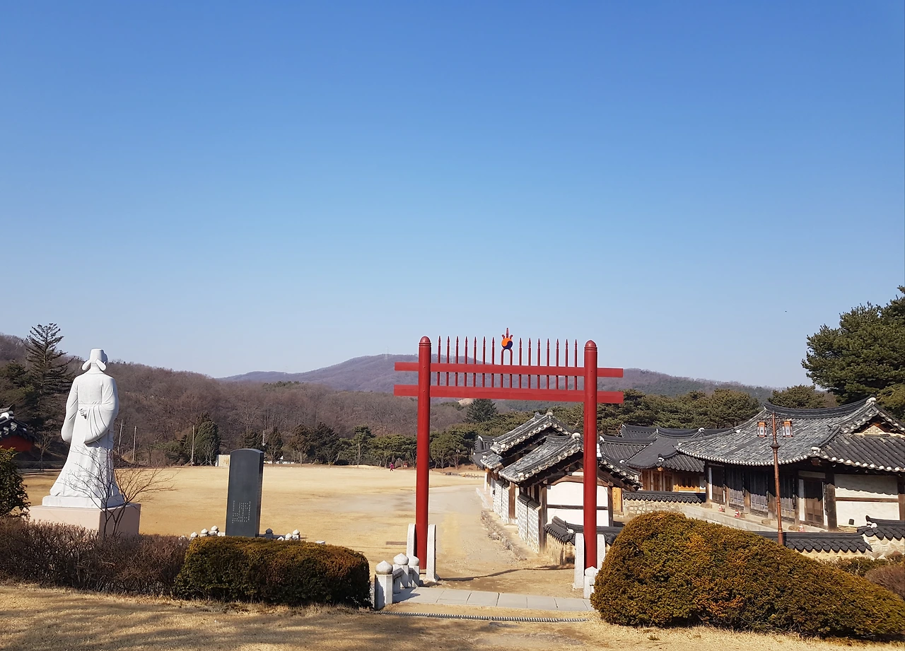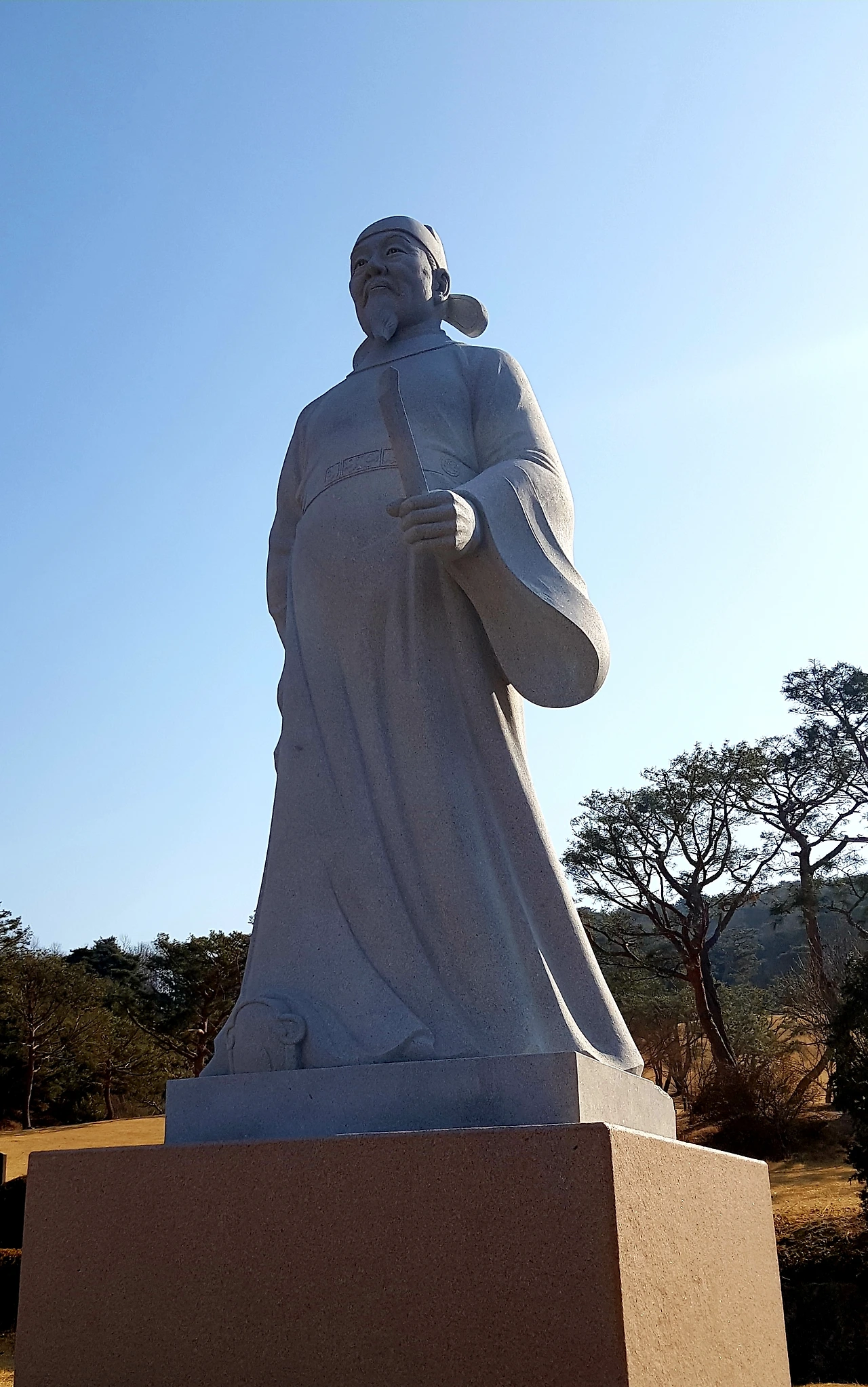묘지 들어가는 길 홍살문 옆에 엄청난 크기의 선생의 동상이 있었다