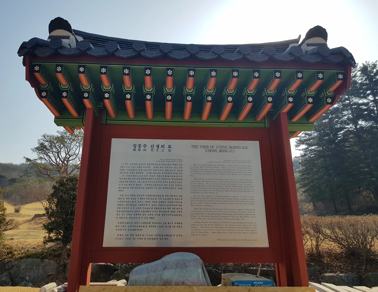 오랜만에 다시 찾은 넓은 잔디 동산 위의 정몽주선생의 묘지를 돌아보고 묘지에서 내려다 보이는 풍경을 바라보며 이곳에 묘를 쓰게 된 내용이 생각났다