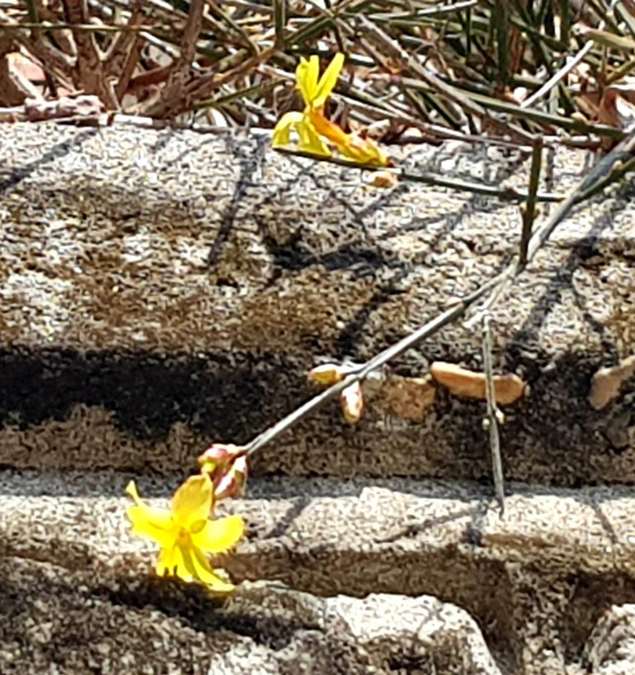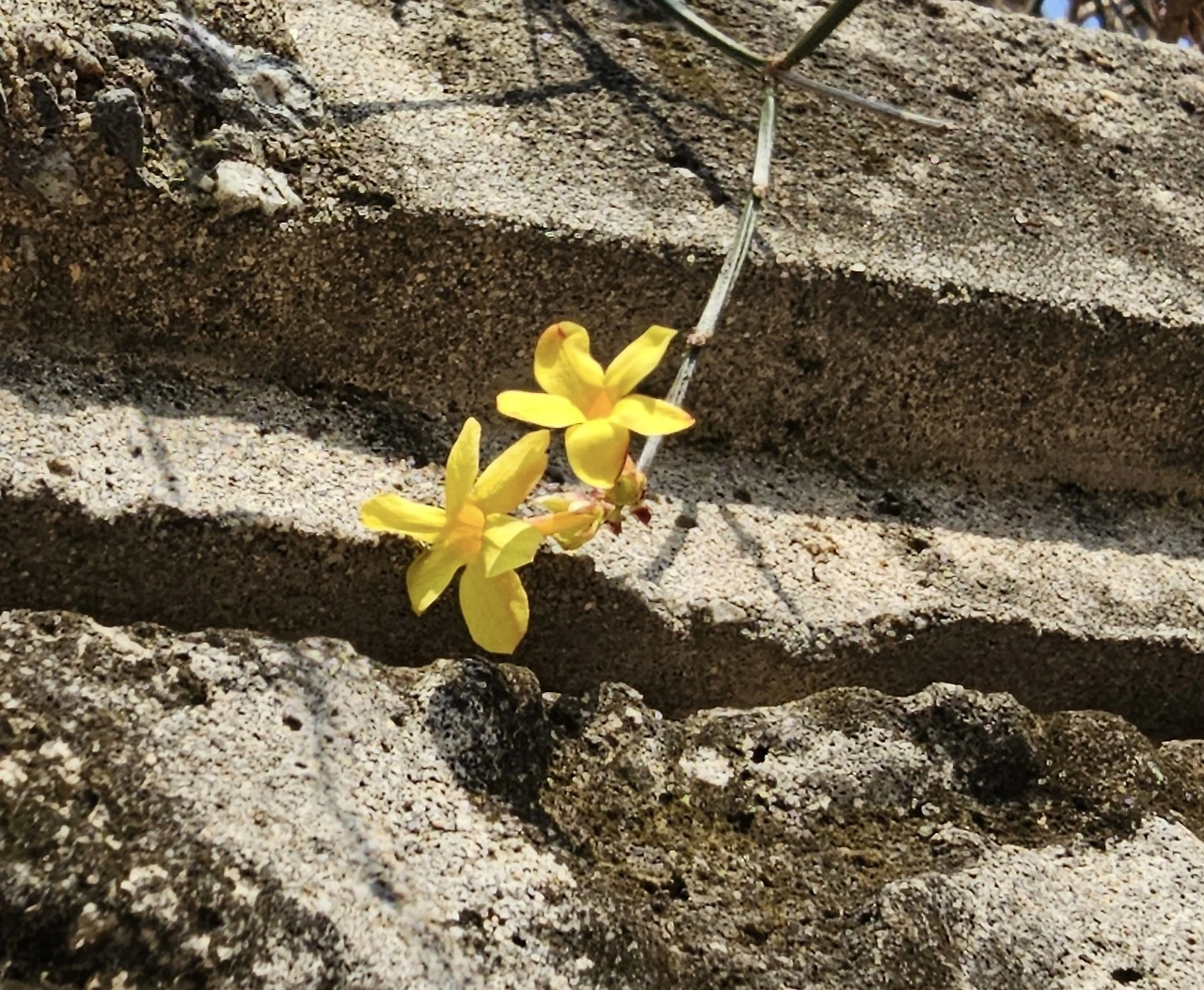 담장 위 꼭대기에 작은 영춘화