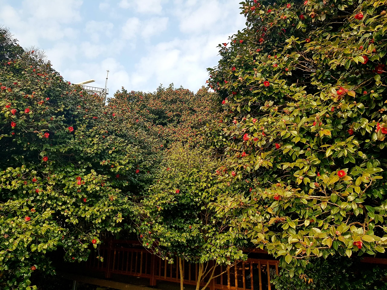 그 크기도 엄청나고 하늘을 덮어버린 동백나무들의 어우러짐에 입이 벌어진다