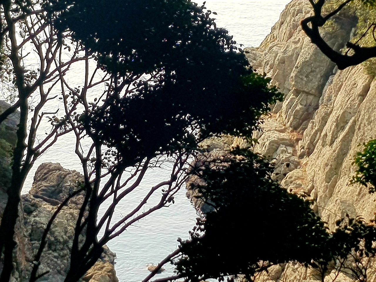 내려오다 남근석?이라는 암덩이가 엄청나게 둘러붙은 나무의 아픔도 보고 군데군데 나무사이로 저 낭떠러지 밑 바닷물 소리도 들으며 한 바퀴 돌아내려왔다