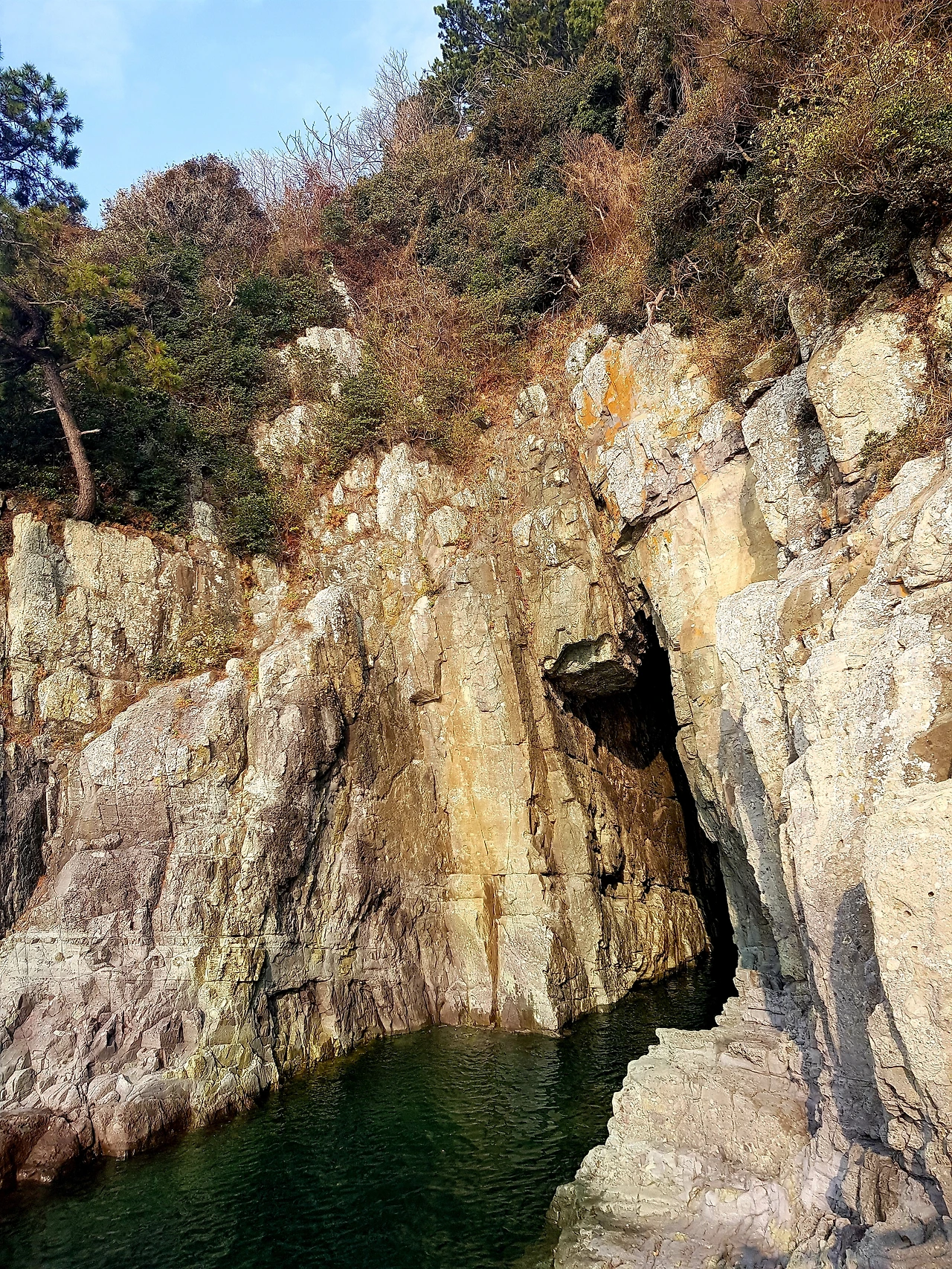 걷다 보니 용굴의 설명이 있어 바닷가로 내려가니 바위를 뚫고 있는 용굴은 바닷물이 차서 들어갈 수 없어 입구만 바라보고 다시 올라와 등대로 향했다