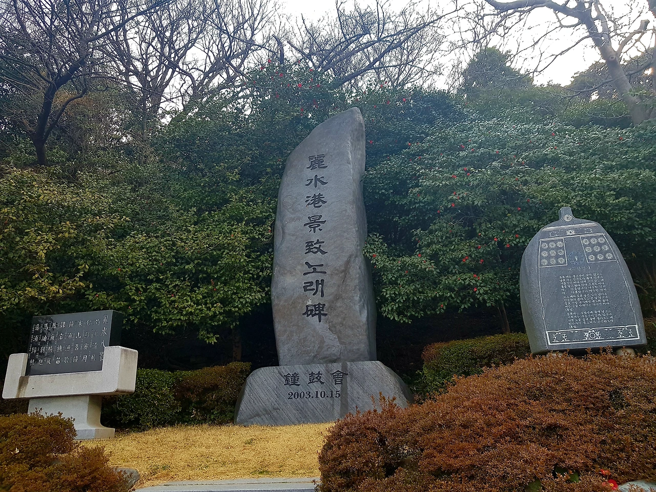 바닷가 광장? 숲가에 커다란 시비인가 싶어 가보니 여수항 풍경 노래비였다