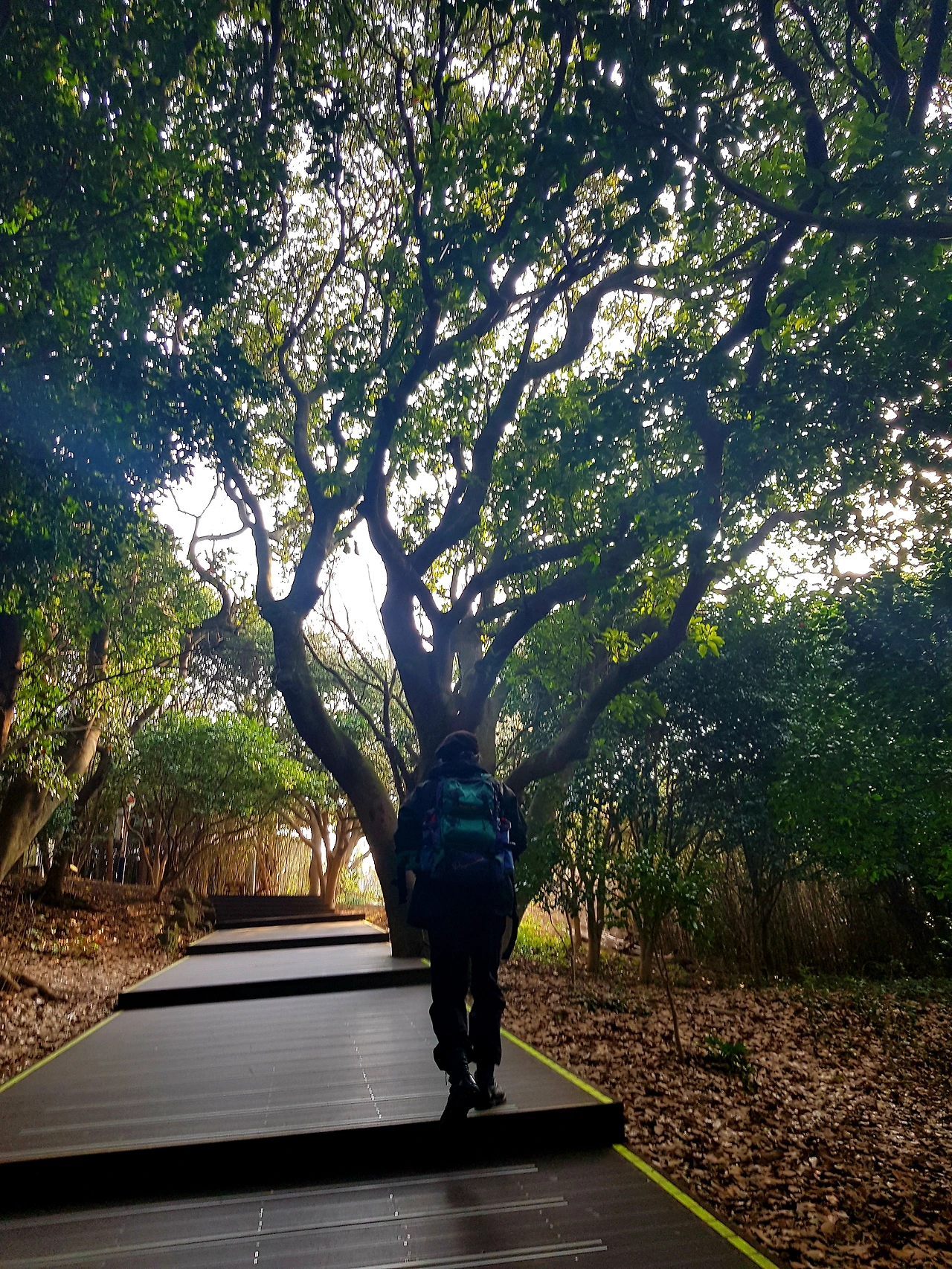 동백숲 입구의 계단을 오르며 보니 데크길이 계속되고 있어 편안한 걸음으로 동백나무를 만난다