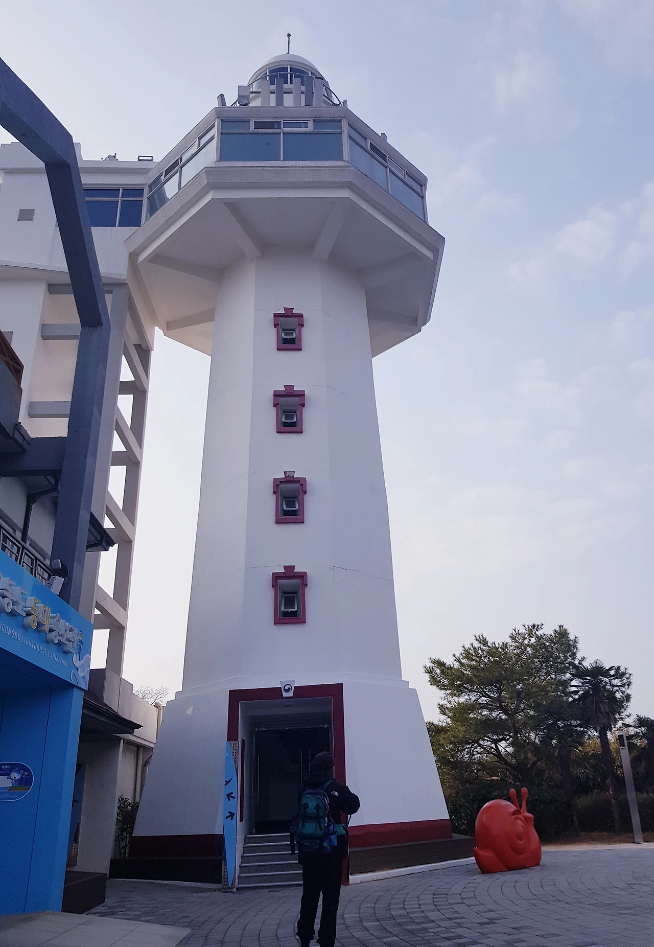 그 앞은 꽤 넓은 광장으로 한 옆으로 가계도 있고, 열차 타는 곳도 있고, 아직은 잠자고 있는 음악분수도 있고, 거북선도 있었는데 바닷가 쪽으로 세워진 영어로 꾸며놓은 오동도라는 이름표가 너무 예뻐 눈길을 끌었다