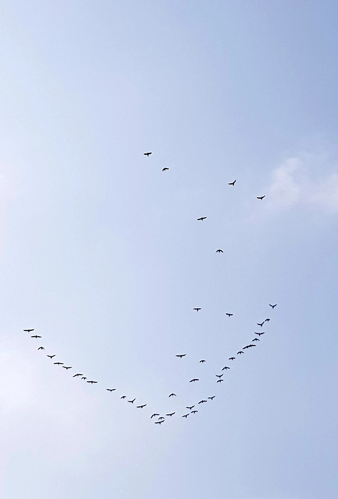 냇가에 놓인 징검다리를 건너 학교 가는 꼬맹이들 줄 섰는데 비가 온 날이면 징검다리가 잠겨 아버지 등에 업혀 건너 주셨는데 아버지의 따뜻한 등의 온기가 가신지 오래지만 다시 전해져 와 코끝이 찡하며 그리움 밀려와 우둑커니 서있는 머리 위로 새들이 군무로 환영인사 보내준