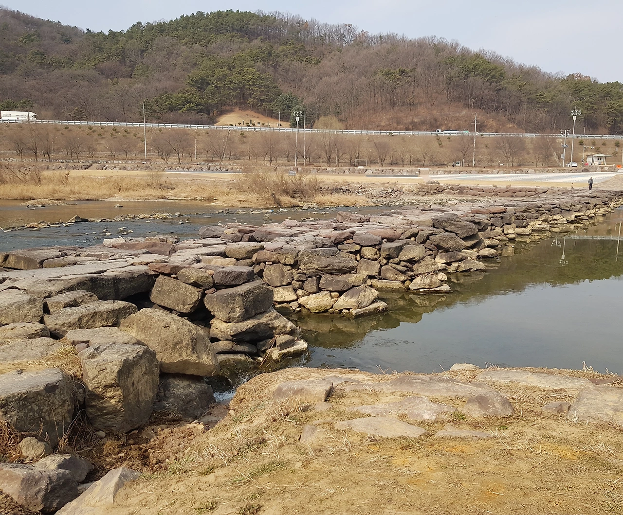 잔 물들이 흐르는 넓은 세금천을 가로질러