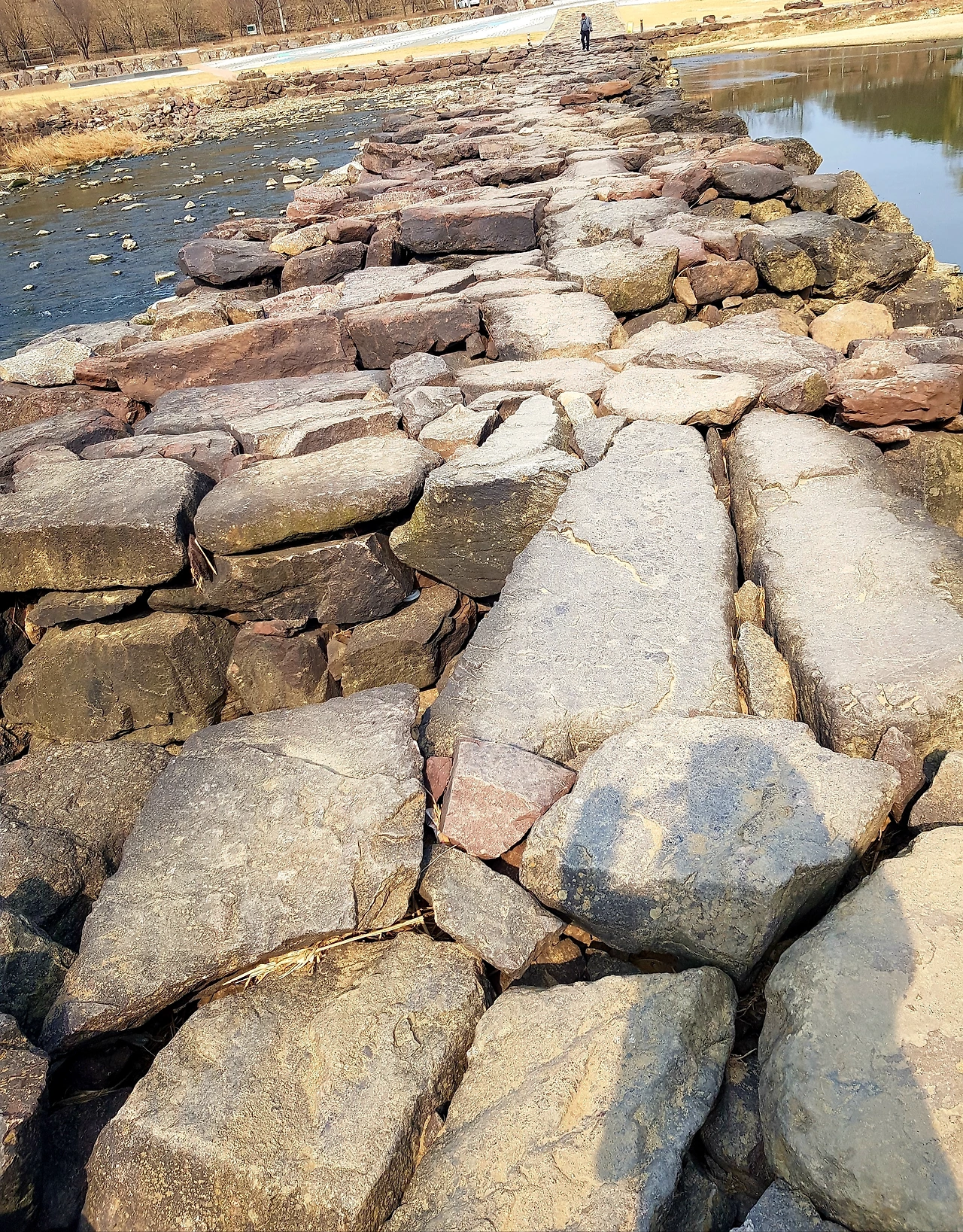 굵직한 돌들이 걸쳐지며 늘어선 농다리
