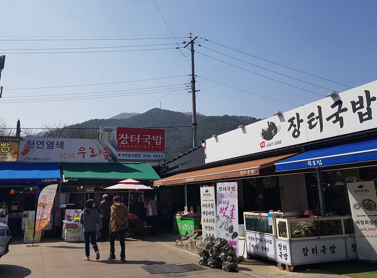 꽃집 옆에 장터 국밥집이 있지만 평일이어서 인지 한가하고 눈길은 안쪽