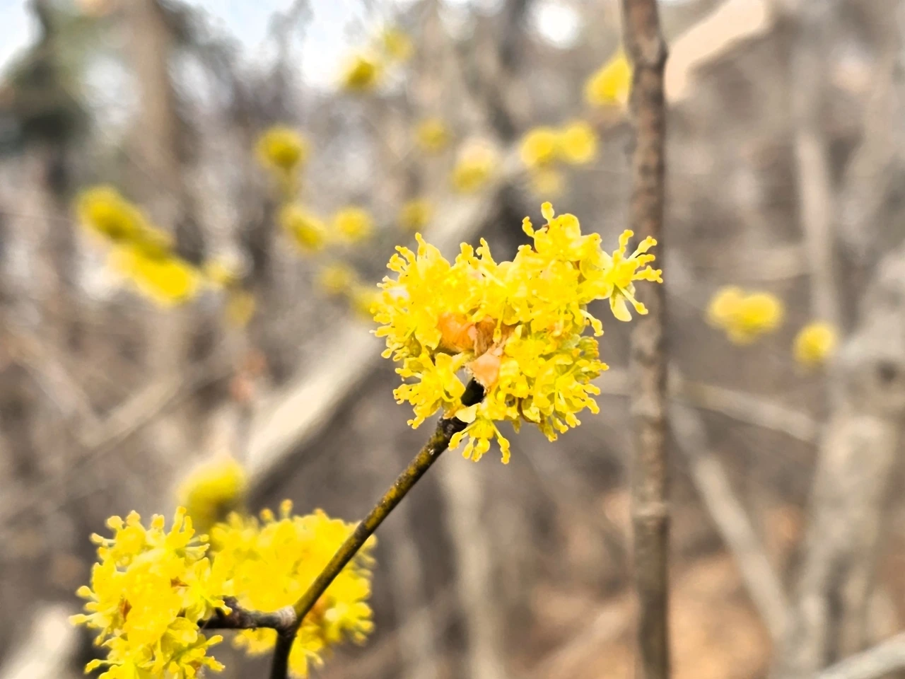 동박꽃 샛노란 미소로 생글생글