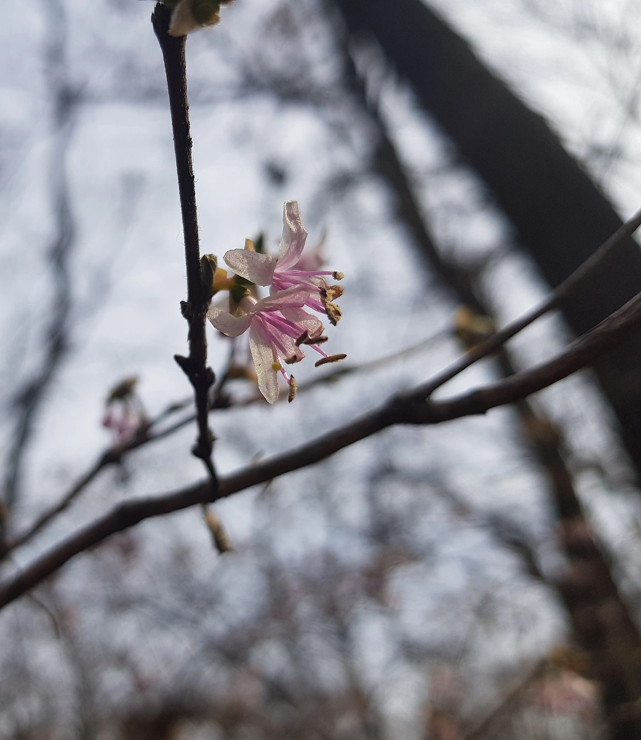 겨울잠에 빠져있던 키 큰 검은 나무들