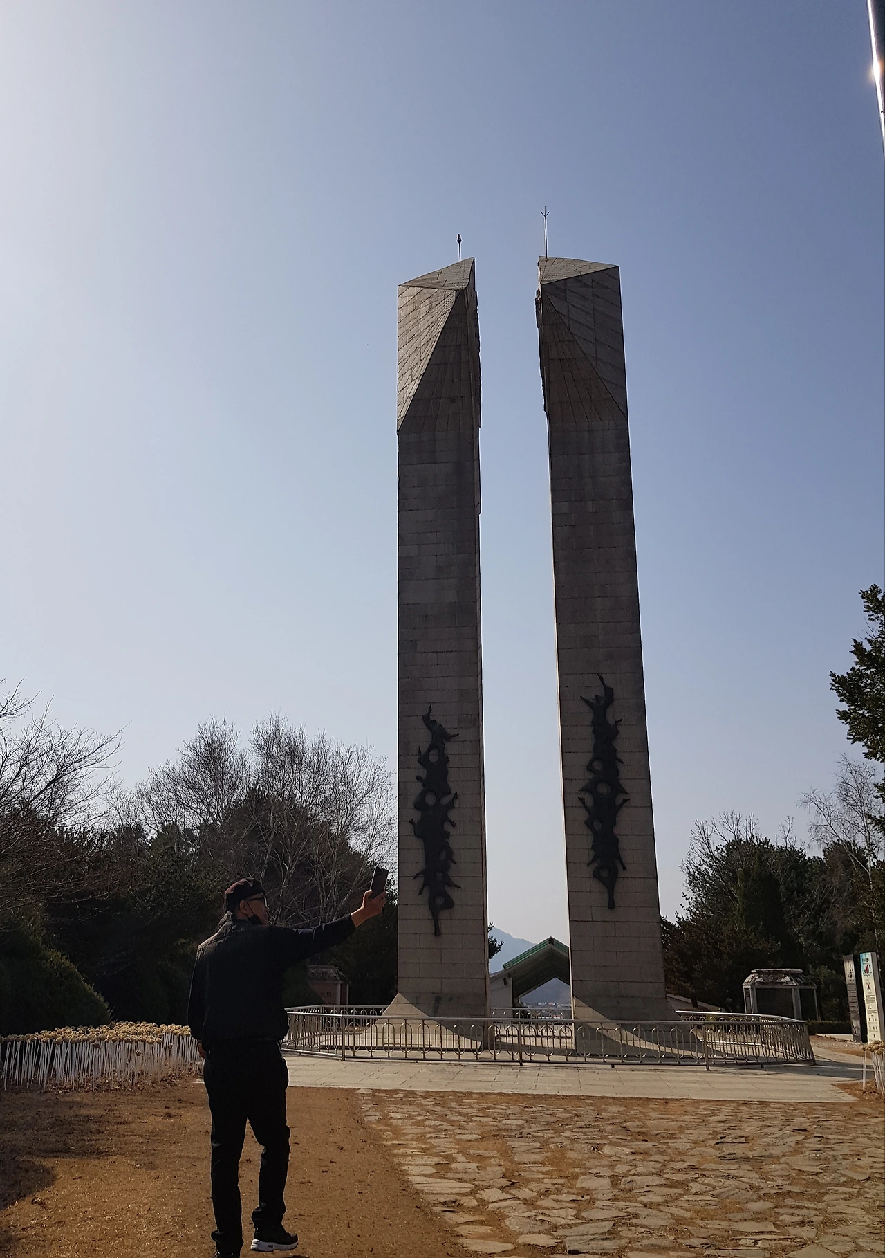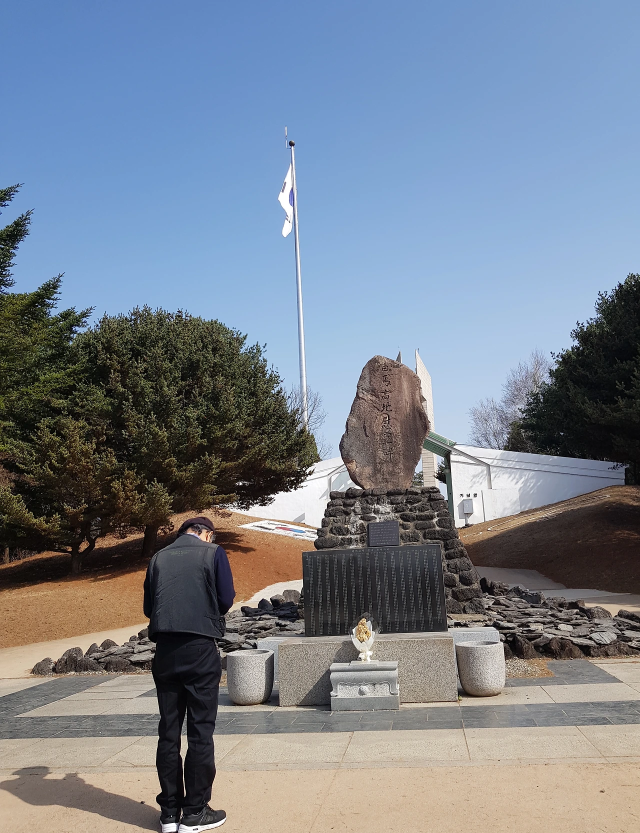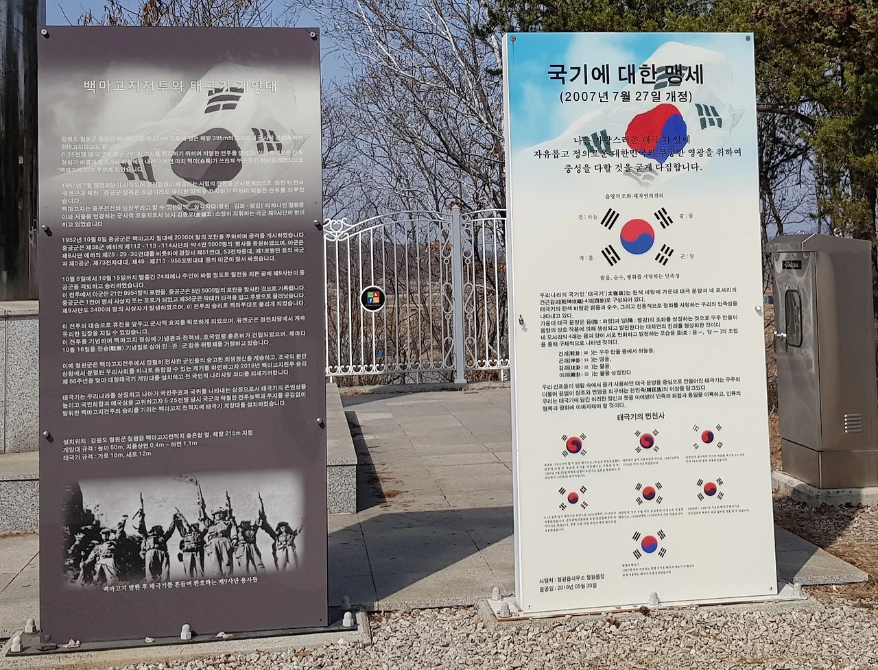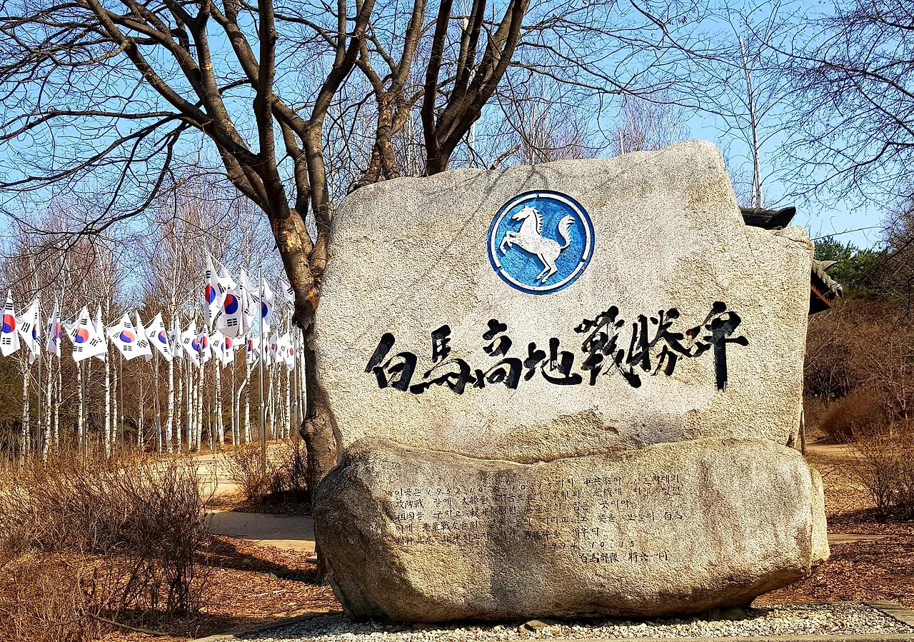 이 엄청나게 쏟아진 포탄으로 인하여 산 허리가 허옇게 드러났고 멀리서 보면 백마 한 마리가 드러누운 모습으로 보인다 하여 백마고지라 기자들이 전쟁 상황을 전송하기 시작하며 백마고지라는 이름이 자연스레 붙여졌다고도 한다는 공부를 하였기에 백마고지 전적지를 대하는 마음이 숙연 하였다