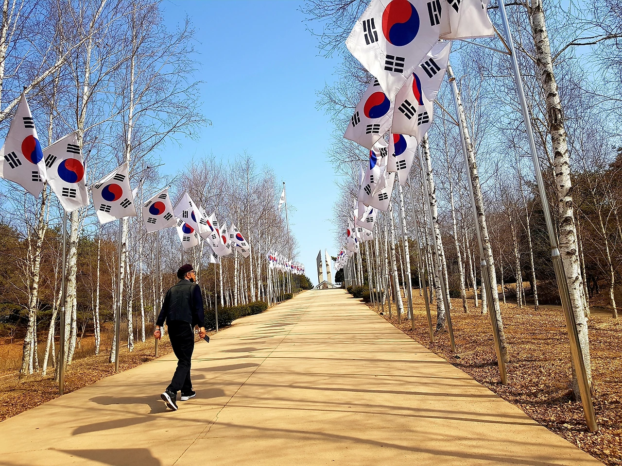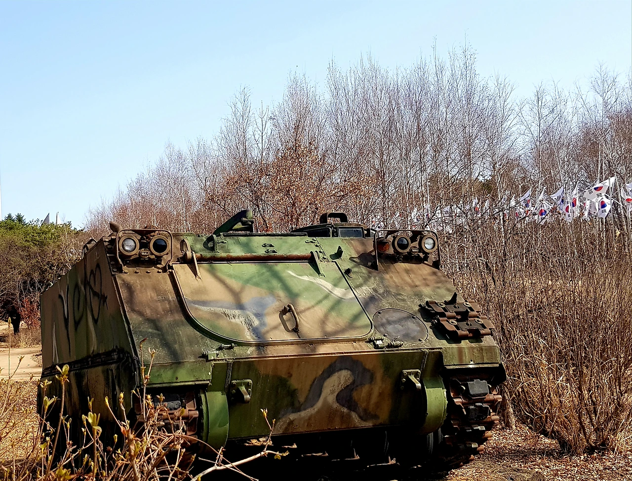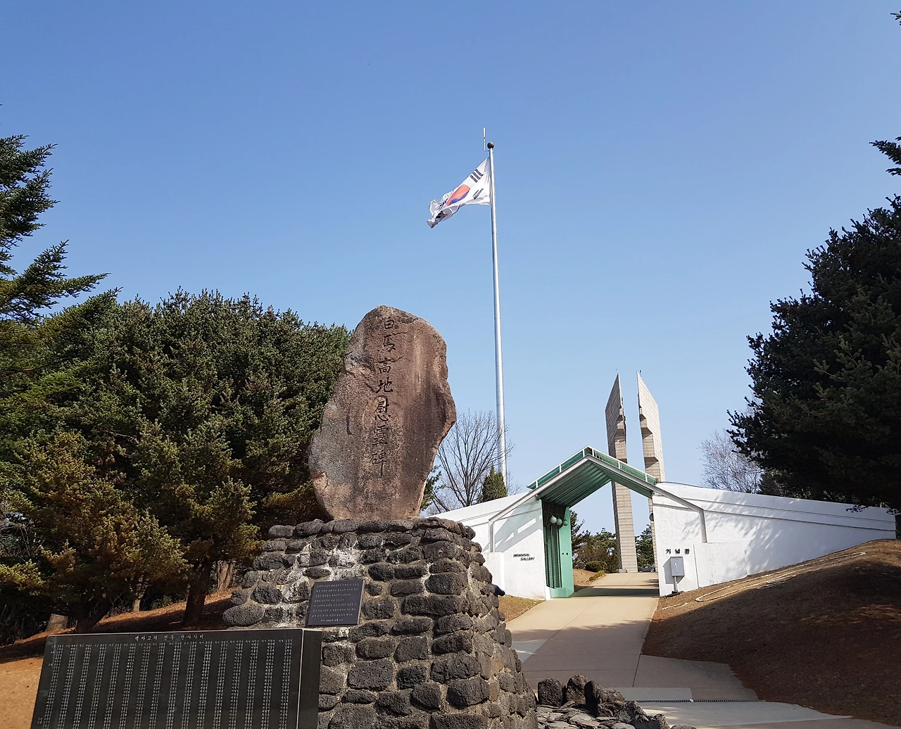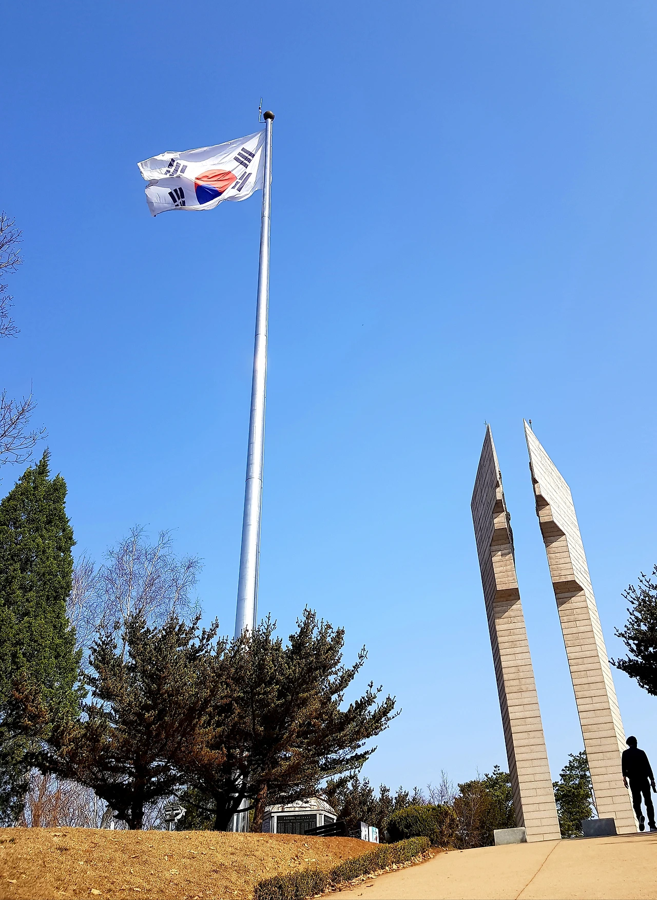 이 엄청나게 쏟아진 포탄으로 인하여 산 허리가 허옇게 드러났고 멀리서 보면 백마 한 마리가 드러누운 모습으로 보인다 하여 백마고지라 기자들이 전쟁 상황을 전송하기 시작하며 백마고지라는 이름이 자연스레 붙여졌다고도 한다는 공부를 하였기에 백마고지 전적지를 대하는 마음이 숙연 하였다