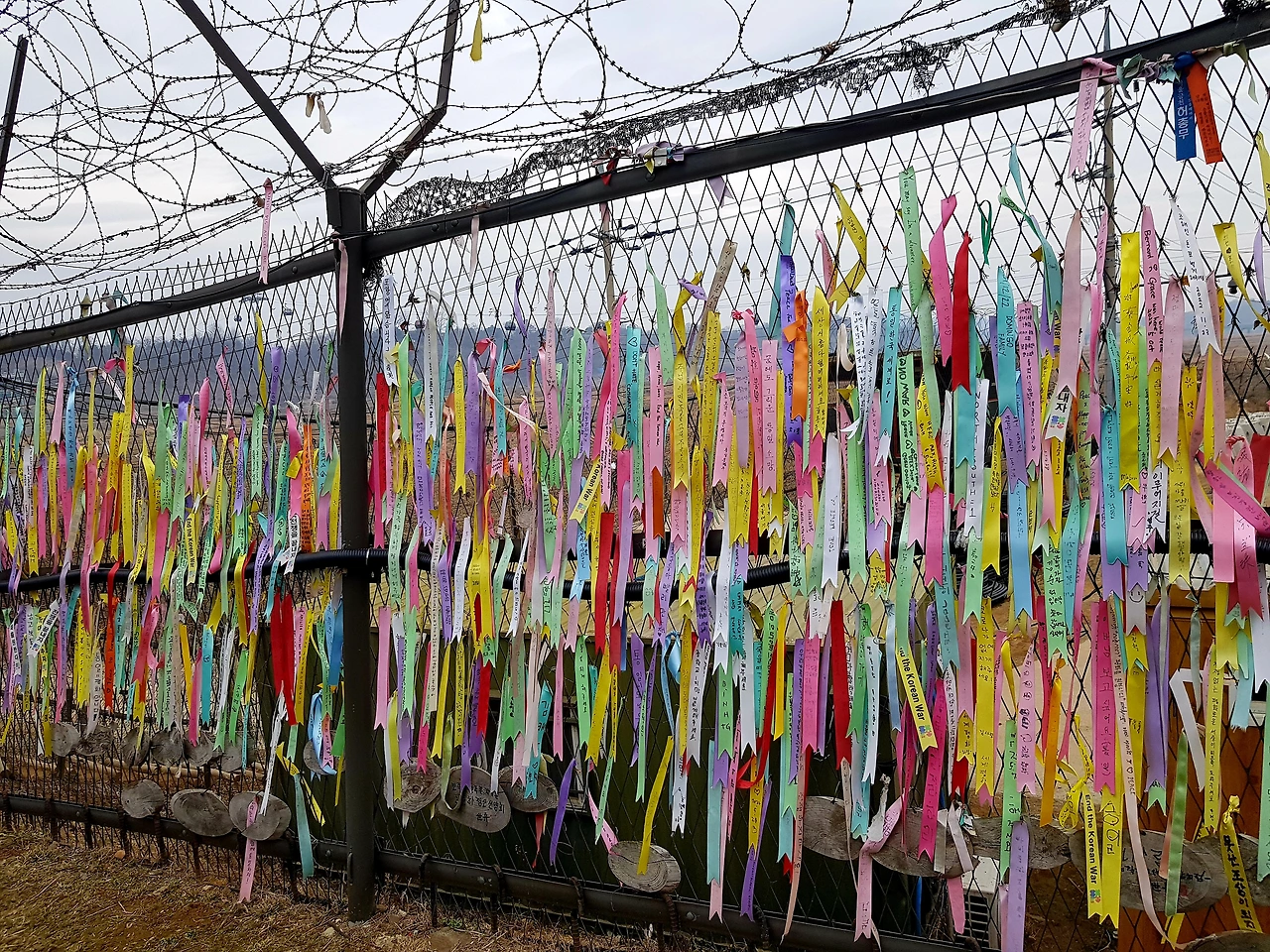 기관차 옆 철망에는 통일의 소망 담아 써 놓은 빼곡하게 걸린 색색의 리본에 쓰인 글들이 큰소리로 ㅡ통일이여 오라 ㅡ고 외치는 것 같아 가슴이 뭉클하다