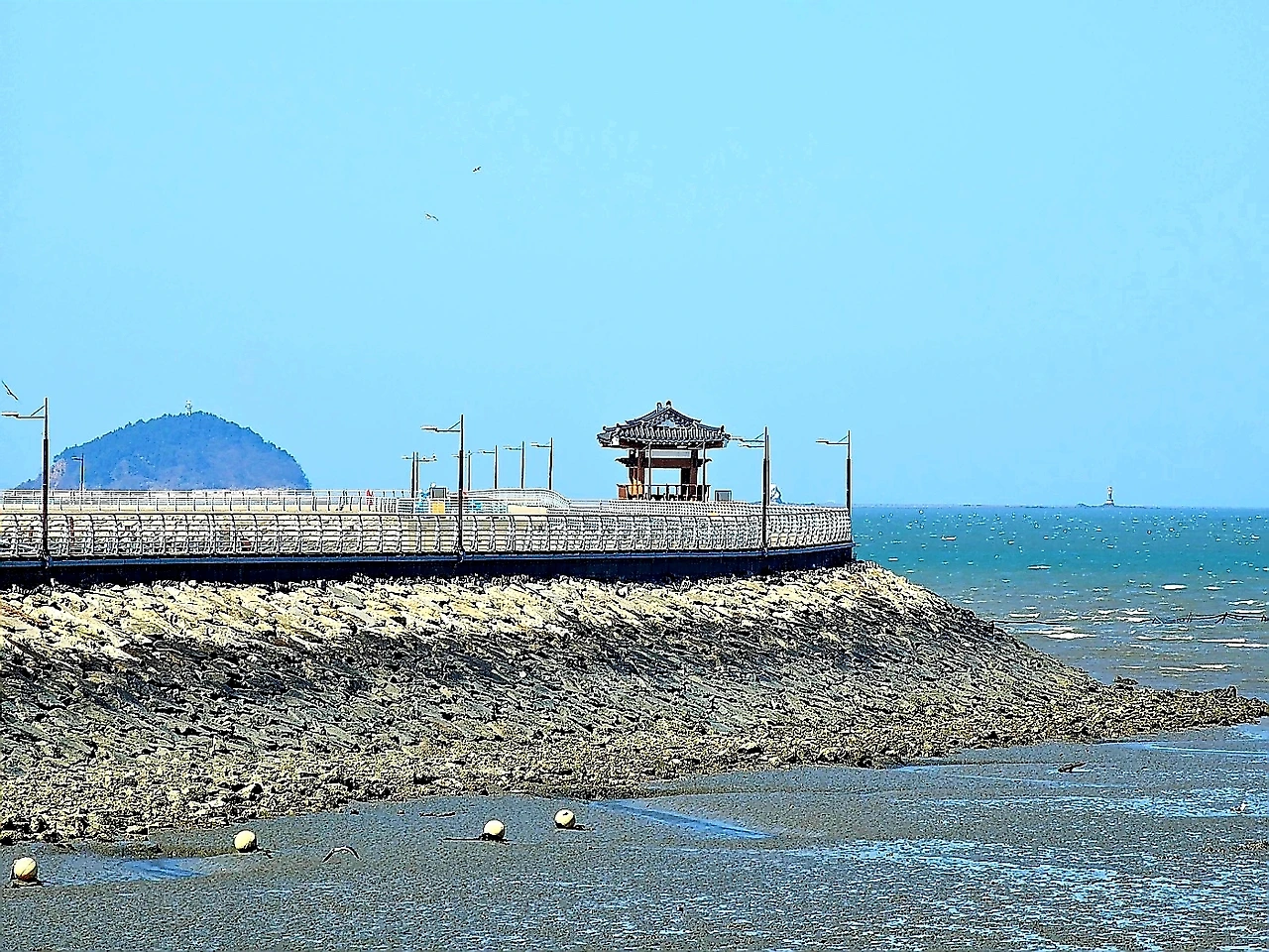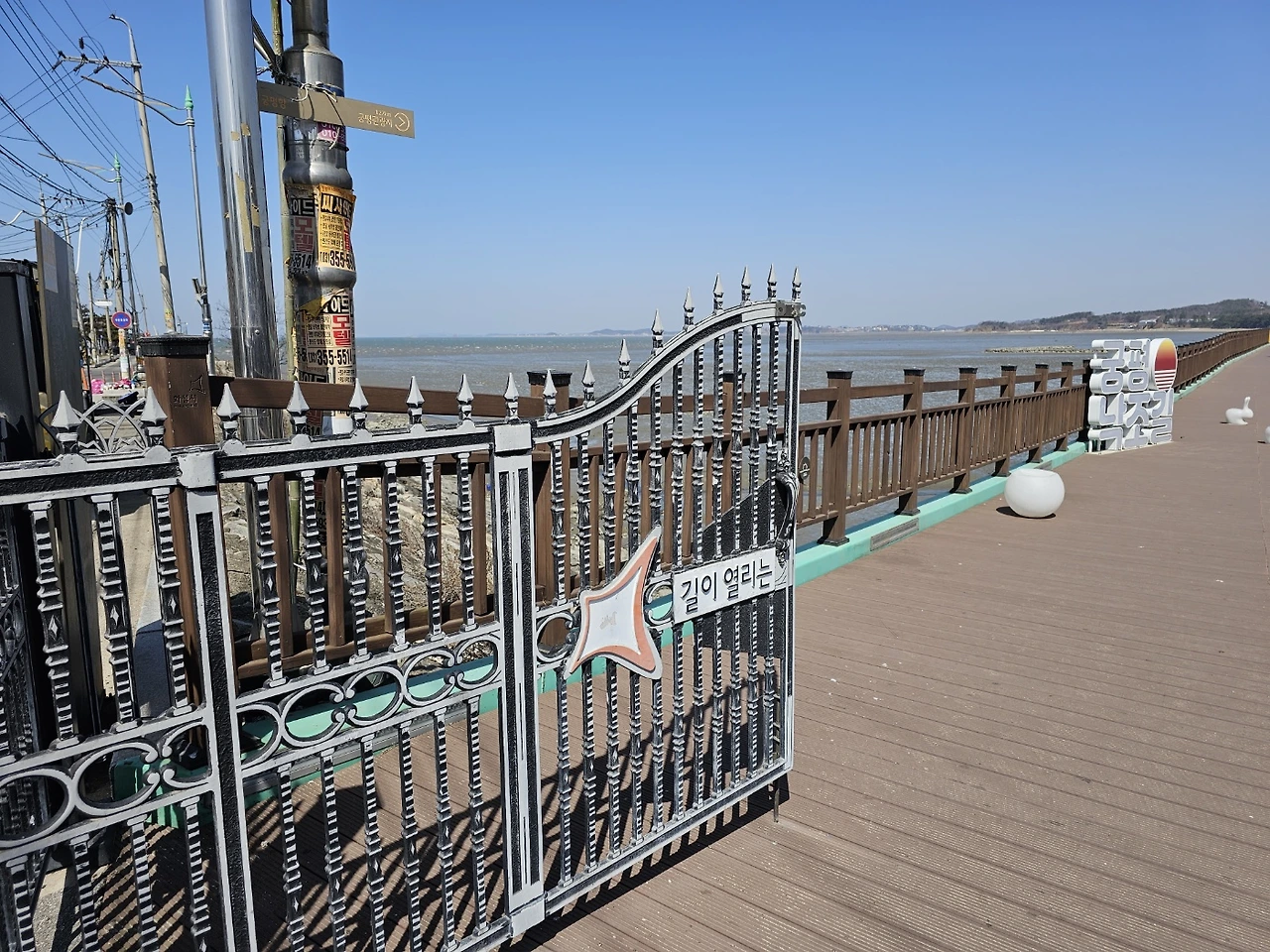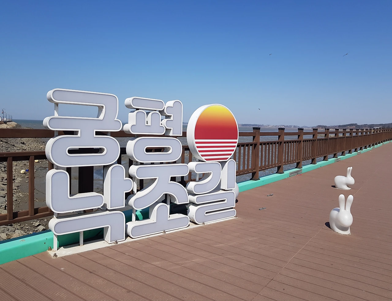 바다를 가로지르며 다리로 설치한 궁평항 낙조길은 찰랑거리는 물이 차 있으면 더 멋졌을 것 같은데 물이 빠져있고 바람이 심하게 불었지만 궁평항의 자랑 같아 그래도 그 길을 걸어본다