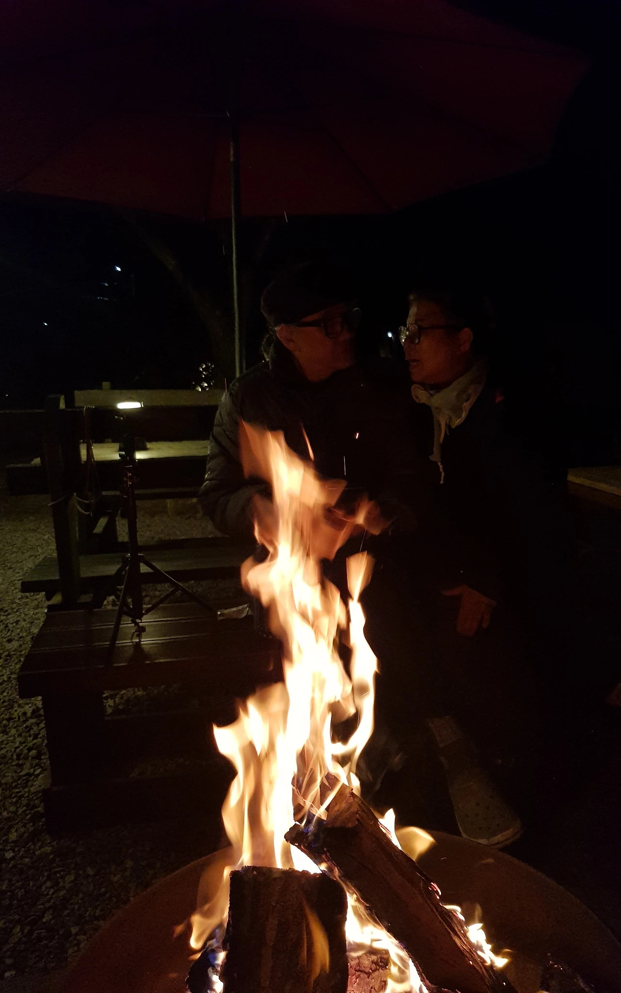 불꽃이 타오르고 우리는 주인 내외도 초대하여 함께 노래도 부르고 불꽃놀이에 불멍을 즐기며 시간 가는 줄을 잊은 듯했다