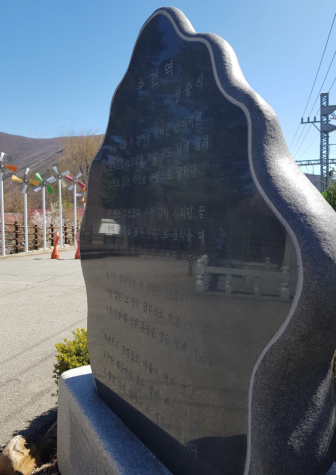 마당에는 커다란 돌비로 추전역을 알리고 한쪽으로 데크를 비치하고 그곳에 시간도 멈춘 추전역의 역사를 안내하고 있었는데