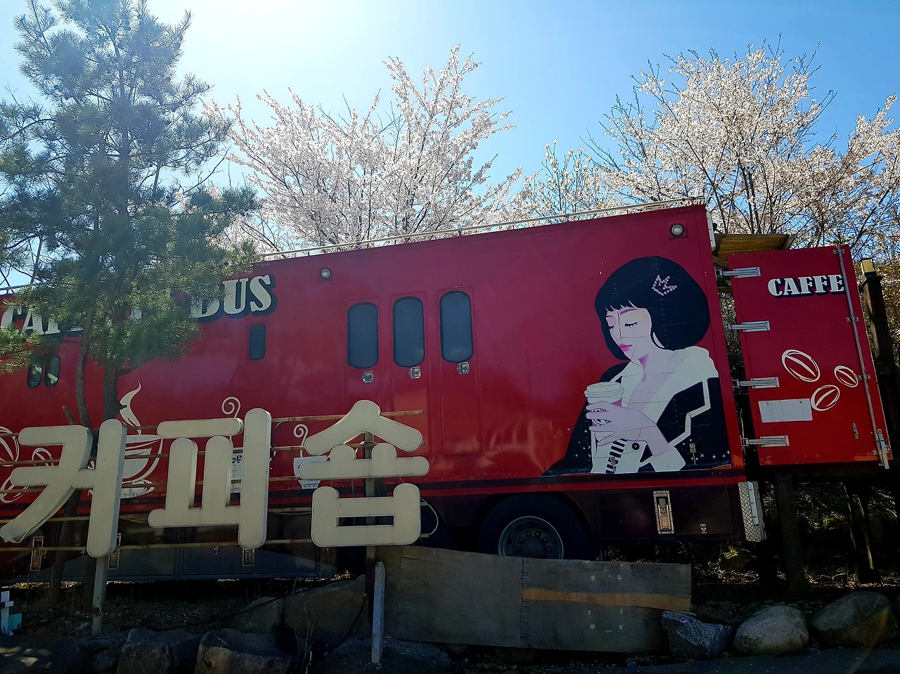 아주 아름다운 여인의 빨간 커피숍이 턱 버티고 있어 의아했지만 관광열차가 들어올 수