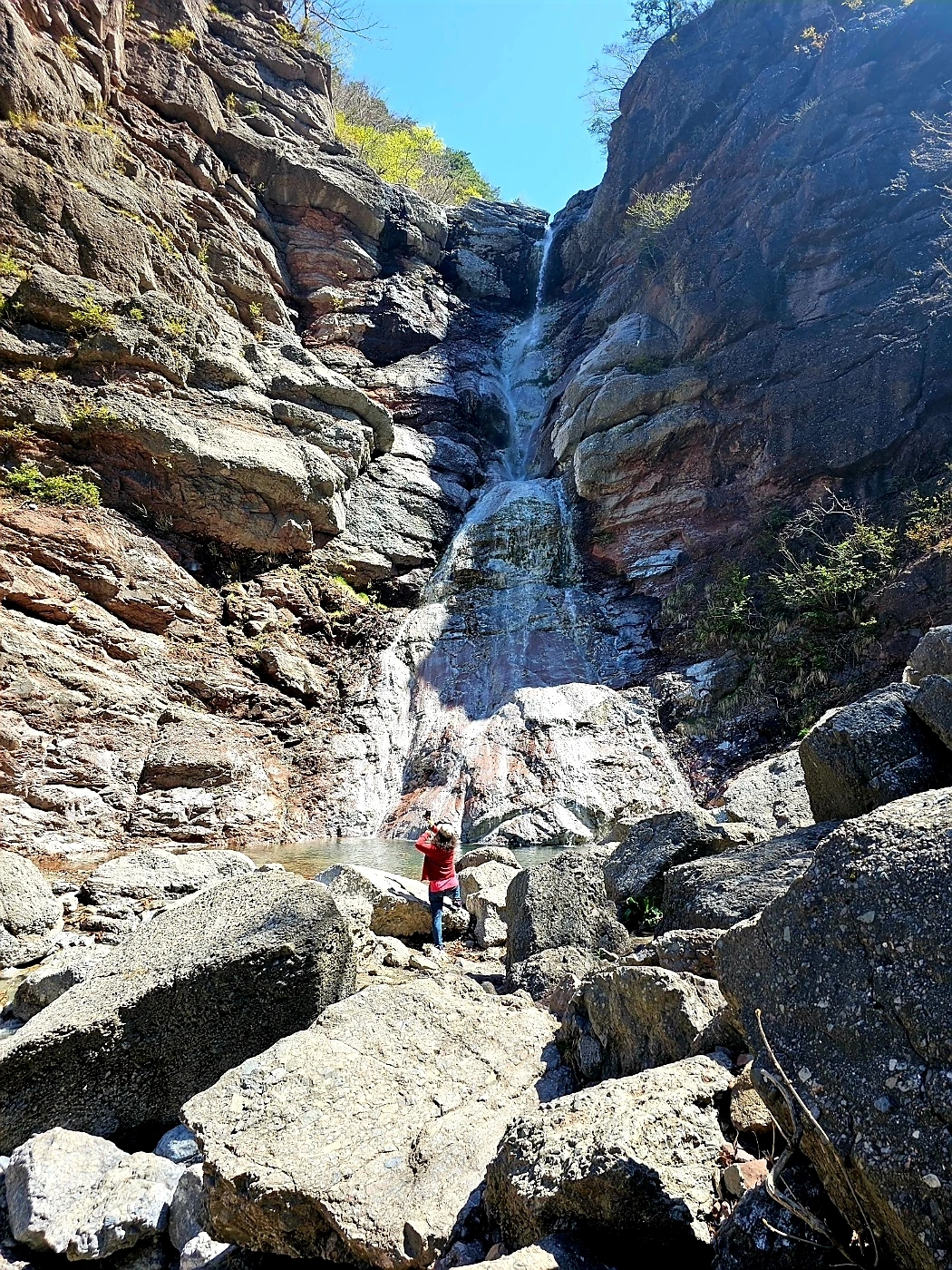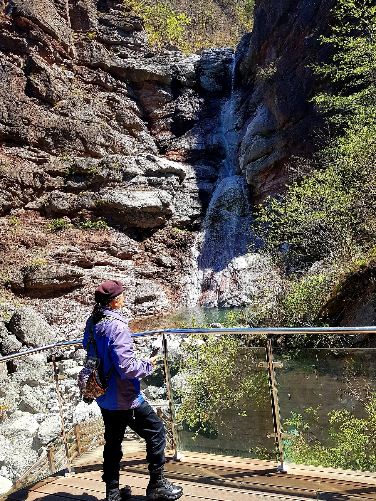 폭포 밑바닥 주변은 커다란 바위로 이루어져 있어 위험하다며 적극 말리는 짝꿍의 만류에도 기어이 폭포 웅덩이로 내려갔다