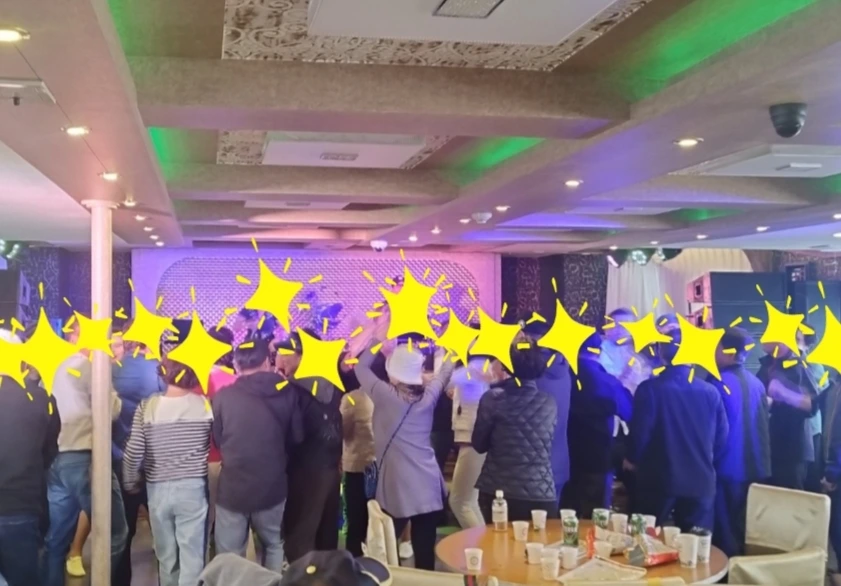 반주자의 반주에 맞추어 신나는 노래를 부르는 가수의 무대 앞에 몇 명의 무리들이 신나게 춤을 추고 있었다