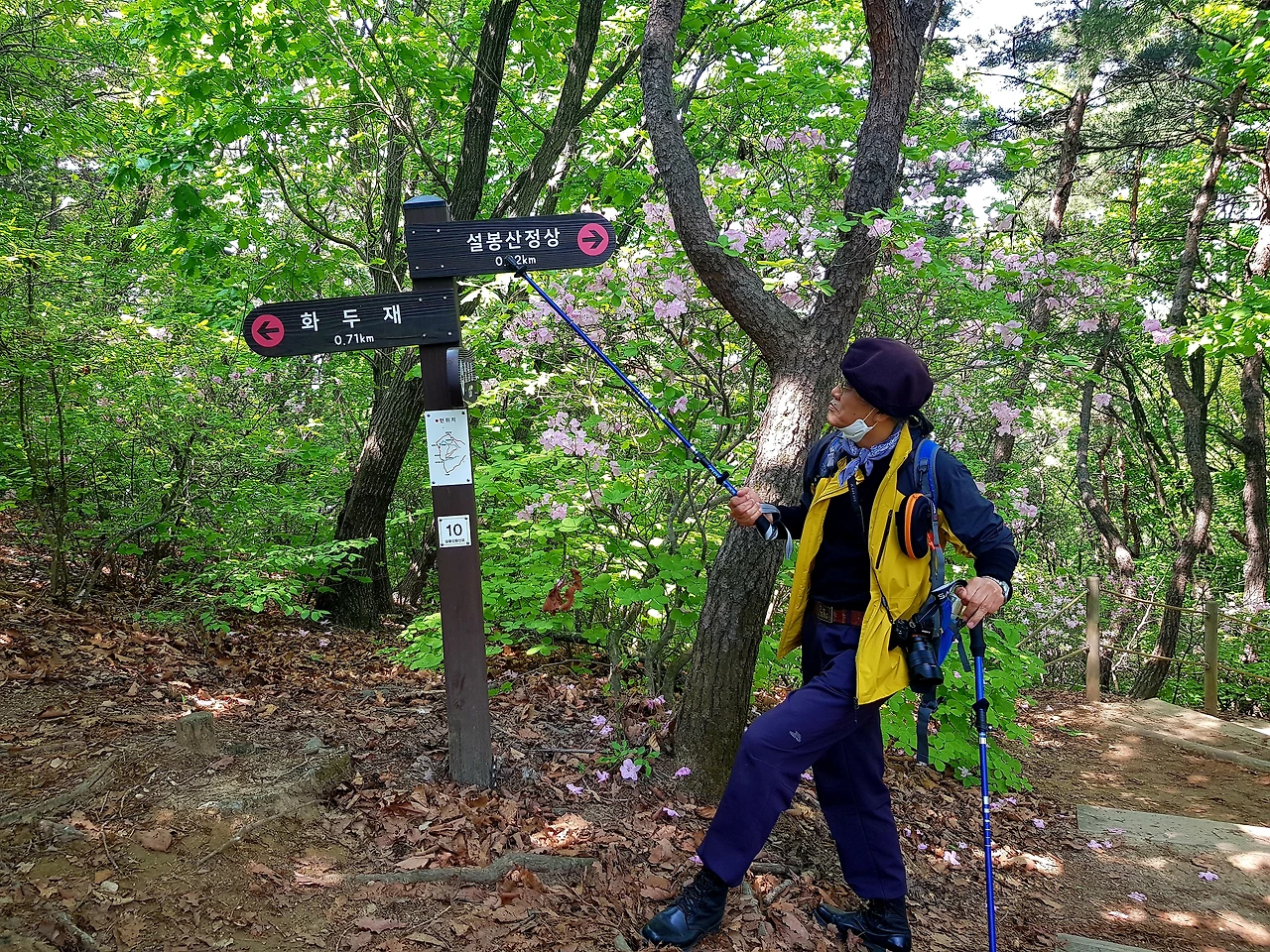 가파른 산길을 오르는데 이정표도 없고 길이 맞는지도 혼동이 되는데 위로 오르면 되겠지 싶을 때 산 위에서 내려오시는 분을 만나 물어보니 자신의 걸음으로 15분쯤 더 오르면 된다는데 그분은 거의 뛰다시피 걷고 있었다
