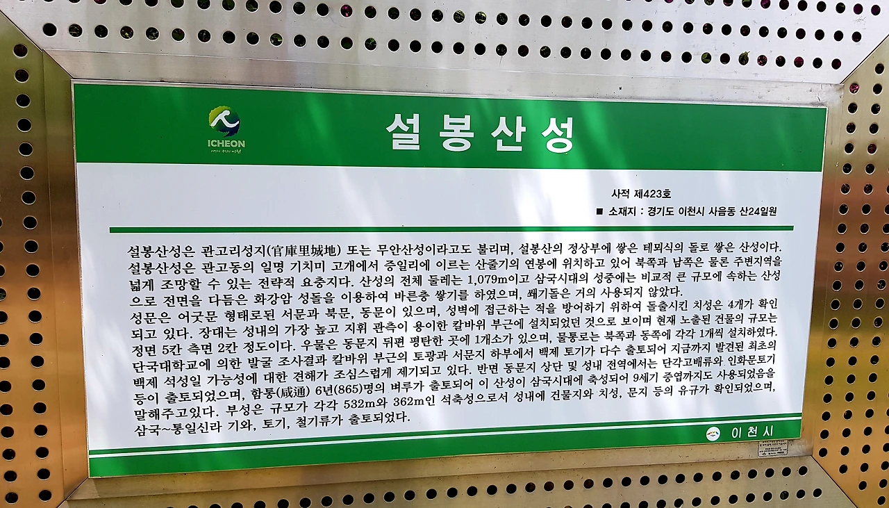 설봉산성은 이쪽저쪽 돌아보니 산 정상 부근에 석조로 튼튼하고 자연지형을 이용 곡선으로 휘기도 하며 세워진 석성이었으며 산성 위의 아름다운 꽃길과 칼바위, 사직단, 봉화대가 있는 보기 드문 산성이었다