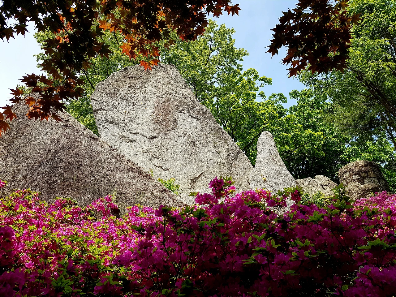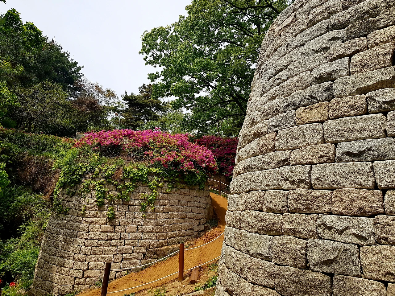 내려온 길을 다시 올라 돌아가는 길로 올라가니 산성 위였는데 철쭉이 흐드러지게 피어있었고 그 사이로 난 길을 따라가자 설봉산성 위의 모습들이 나타났다