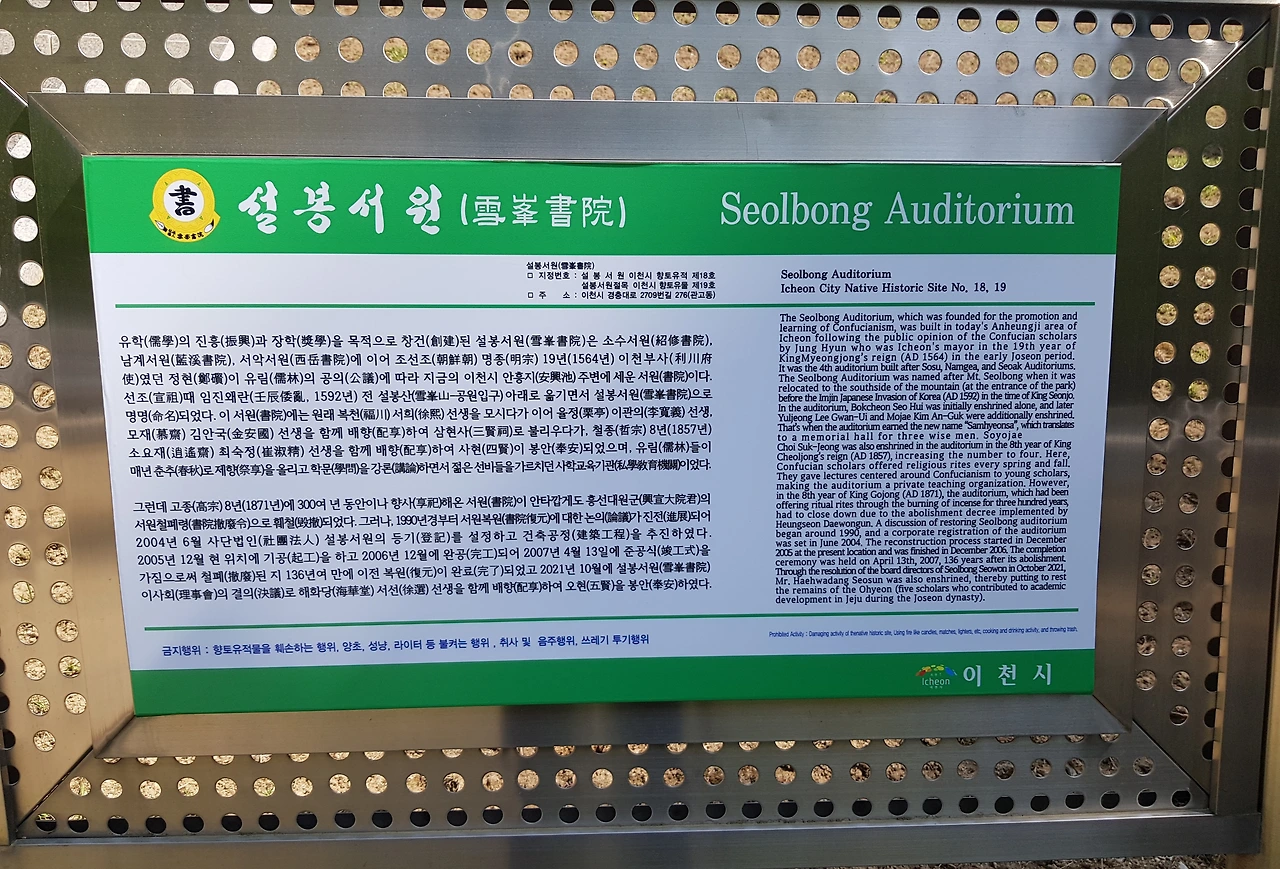 지금껏 몇 곳의 서원에 가 보았는데 현재에도 교육의 장인 서원의 기능을 하고 있는 곳 보다 관광지의 개념이 많았는데 설봉서원에서는 아직도 서원의 본분을 이어오고 있음을 보며 왜인지 감사한 생각이 들었다