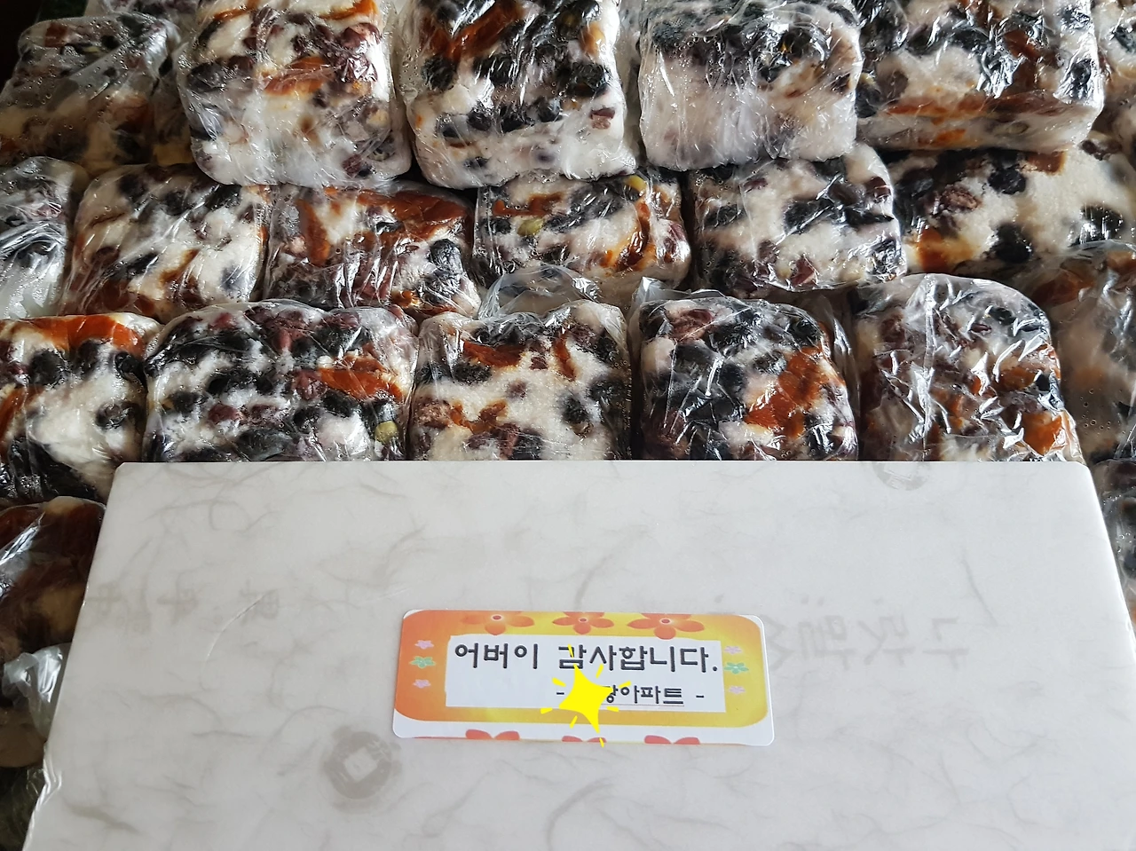 10여 년 전부터 어버이날이면 아파트에 거주하시는 70세 이상의 어르신들에게 아파트 주민모두의 이름으로 떡을 드린다