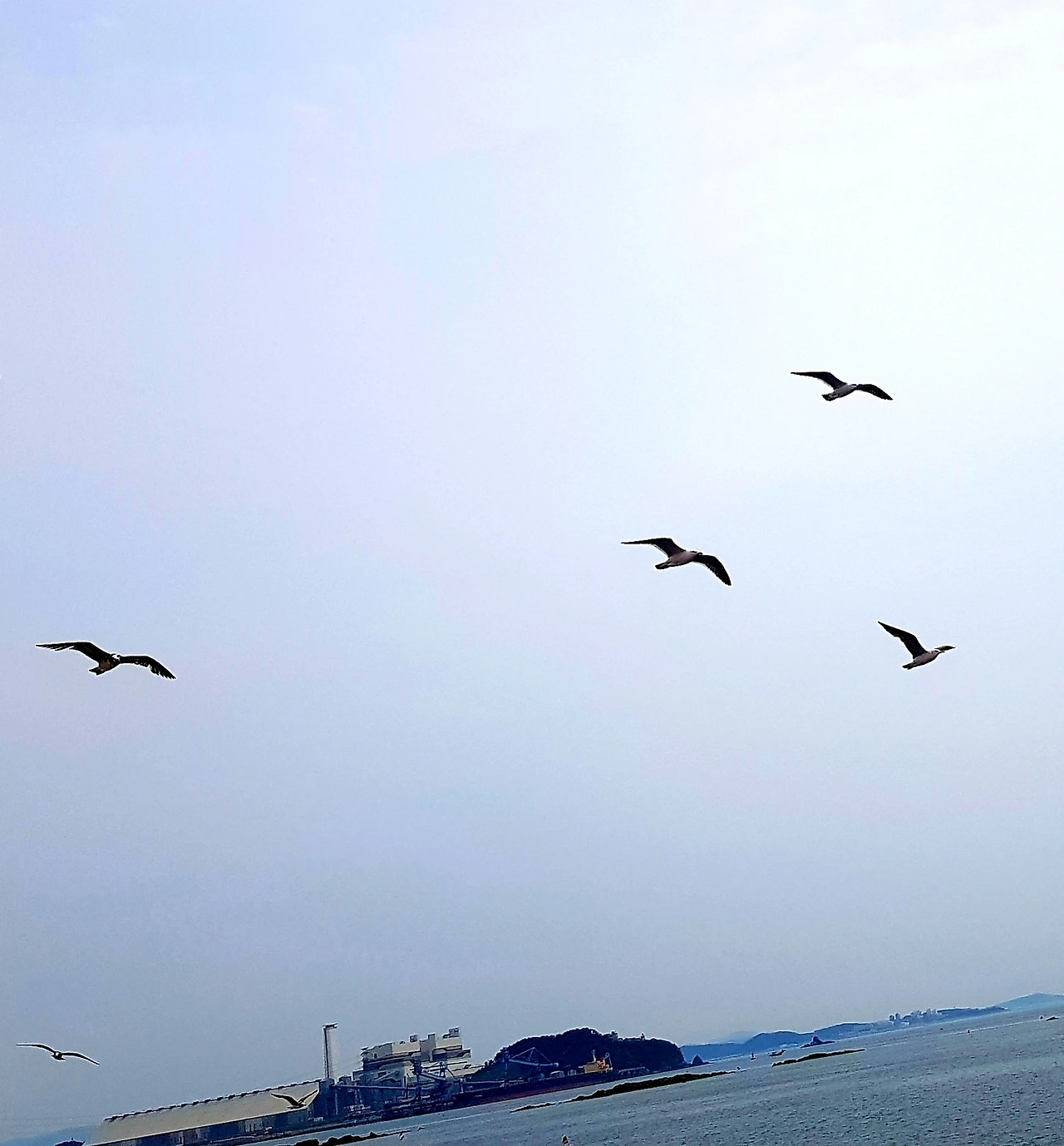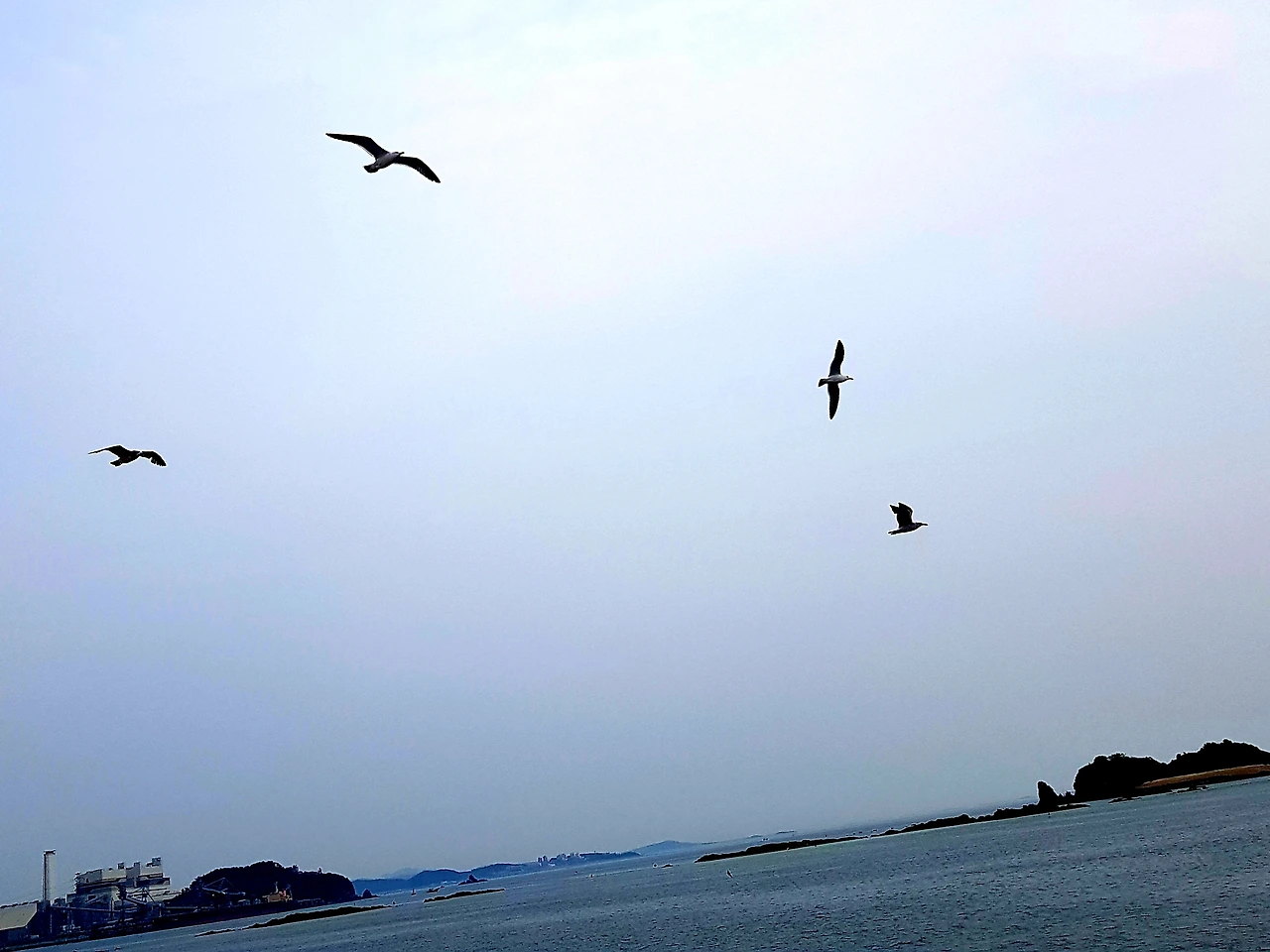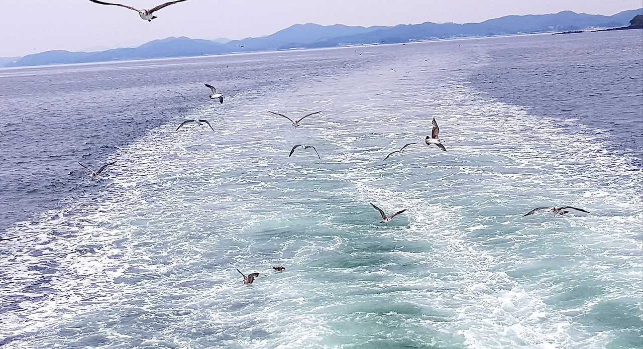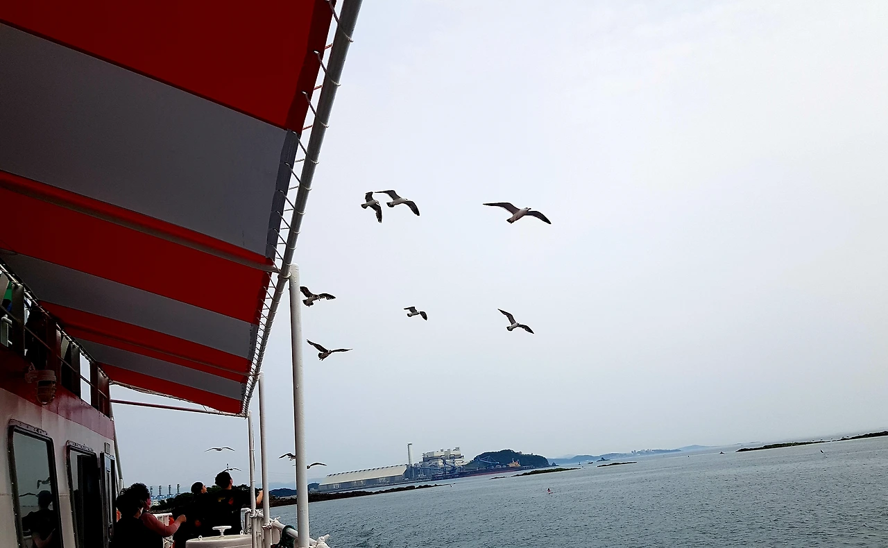 약 1시간 30분 정도의 시간에 대천항과 안면도 사이 주변 아름다운 섬들의 비경을 감상할 수 있었는데 갈매기들의 멋진 춤이 아름답고 행복한 기쁨을 더욱 확장시켜주고 있었다