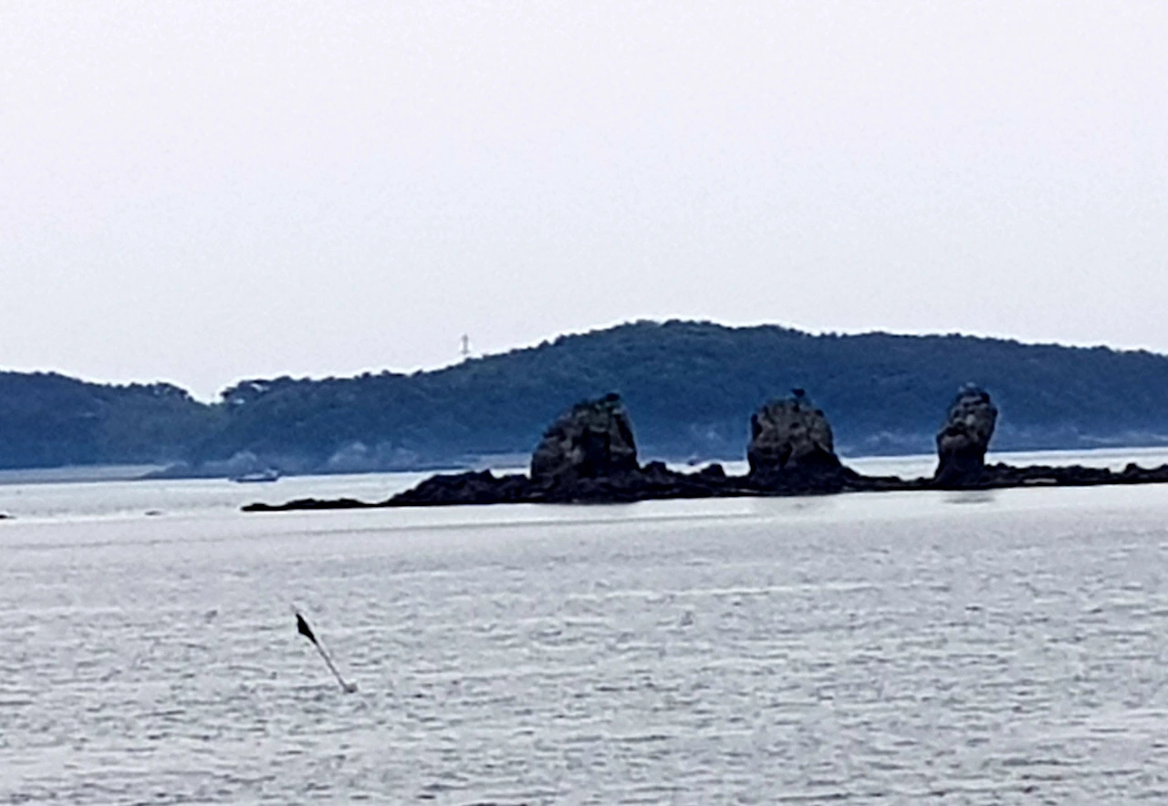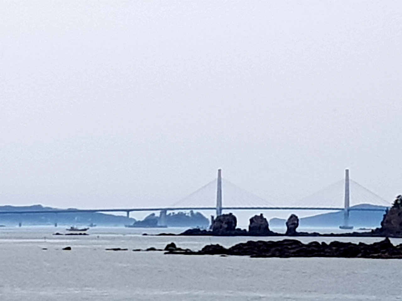 삼 형제 바위를 배경으로 펼쳐진 너무도 아름다운 풍경의 안면대교