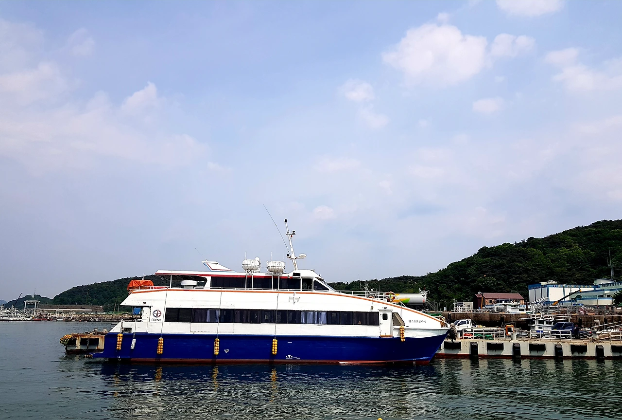 빨간 대천항 크루즈를 타고 바다로 나갔다