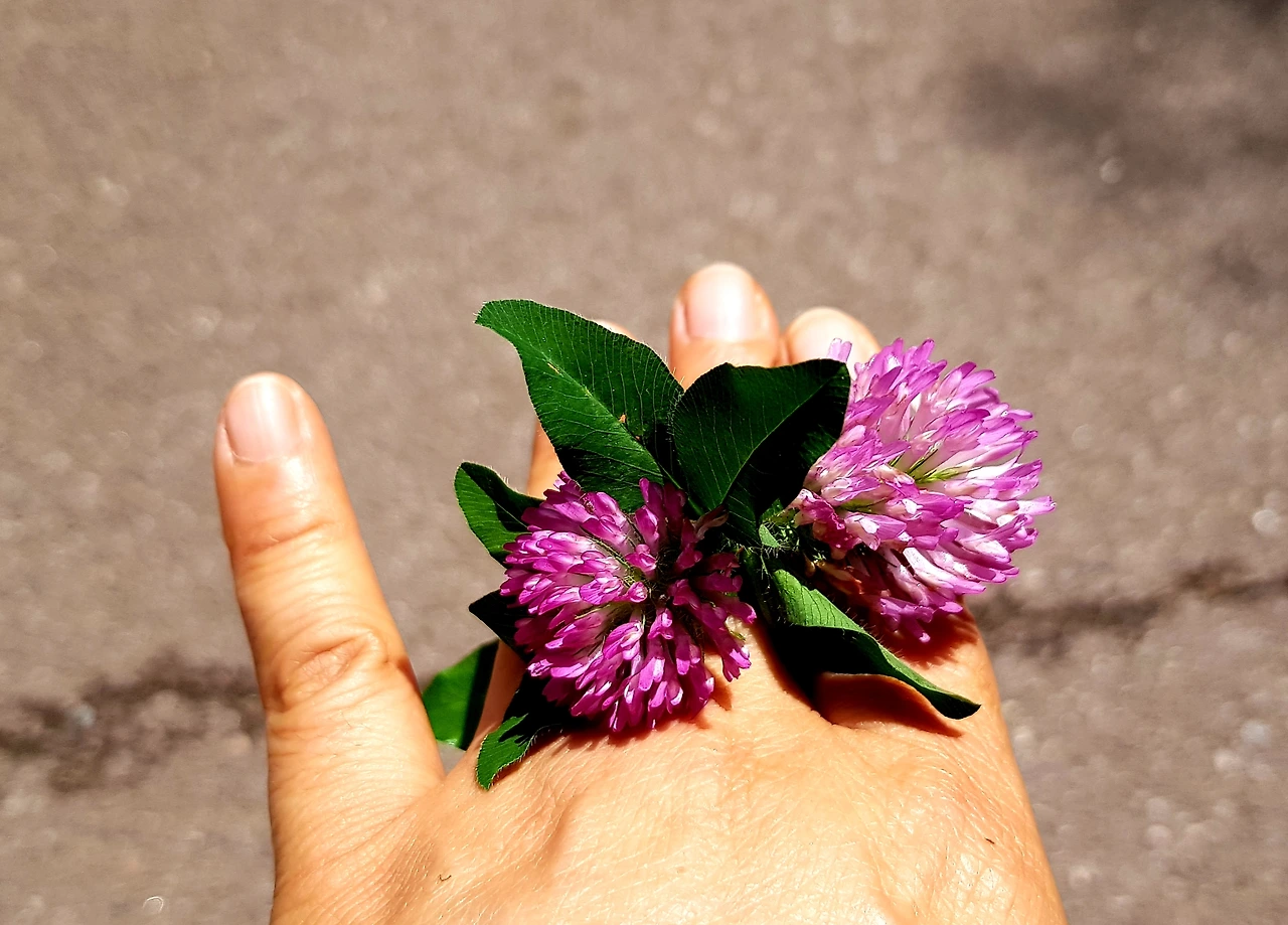예쁜 꽃반지 손에 끼고는