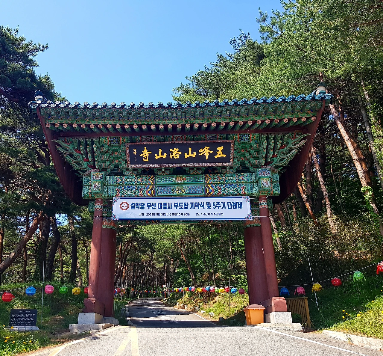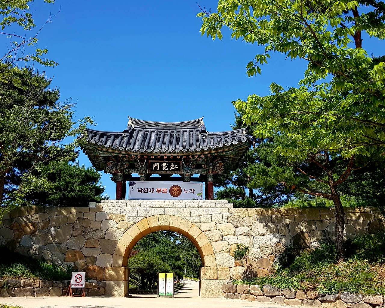 일주문을 통과해서 들어가 주차장에 주차를 하고 다시 관음성지 낙산사라 쓰인 또 다른 문을 통과해 소나무 숲을 지나고 홍예문도 지나 안으로 들어가 낙산사를 둘러보았다