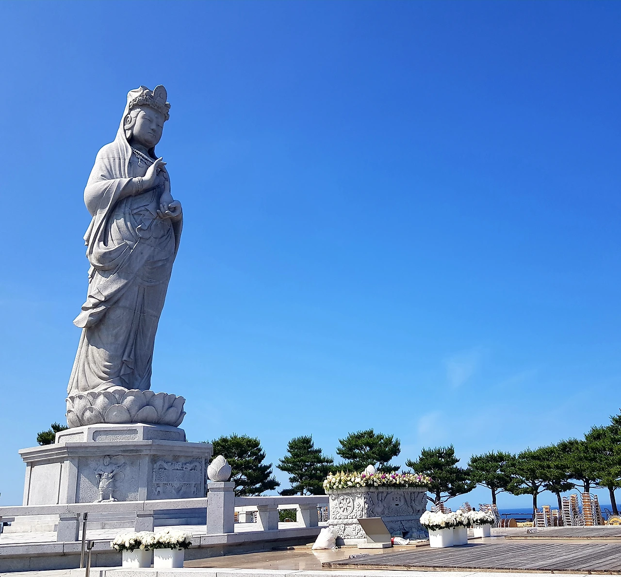 예전에는 오랜 역사를 간직한 귀한 우리의 자랑스러운 문화와 경건함을 내포하는 깊은 무게감을 느꼈는데 이번에 만난 낙산사는 새롭고 산뜻함으로 아직도 계속되는 공사현장과 새롭게 조성된 변화된 모습 그리고 가끔씩 눈에 띄는 누군가의 시주라는 안내판이 왠지 낯설었다