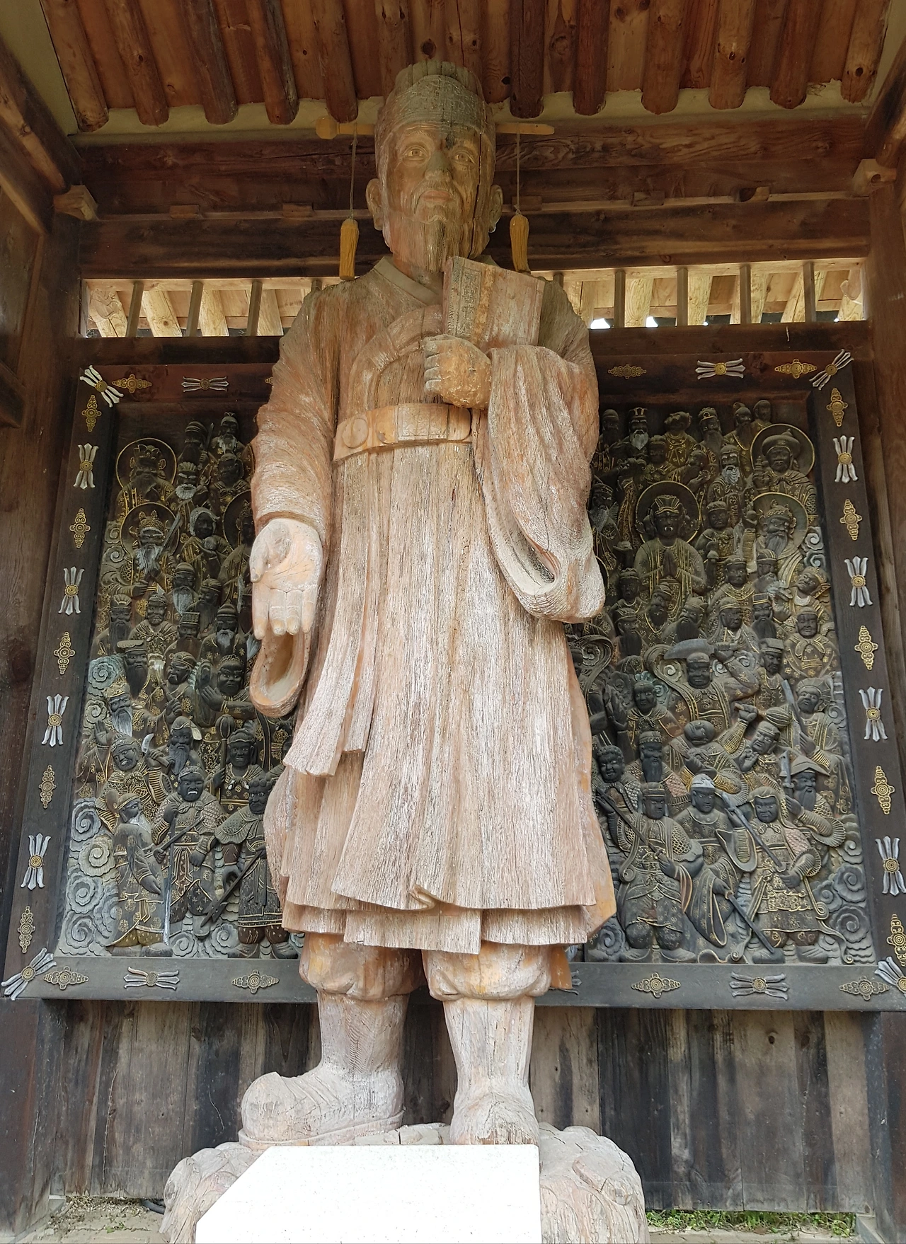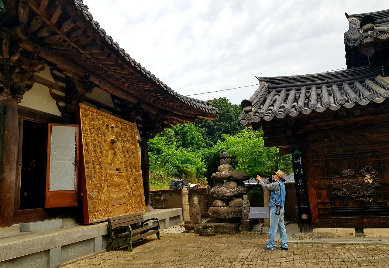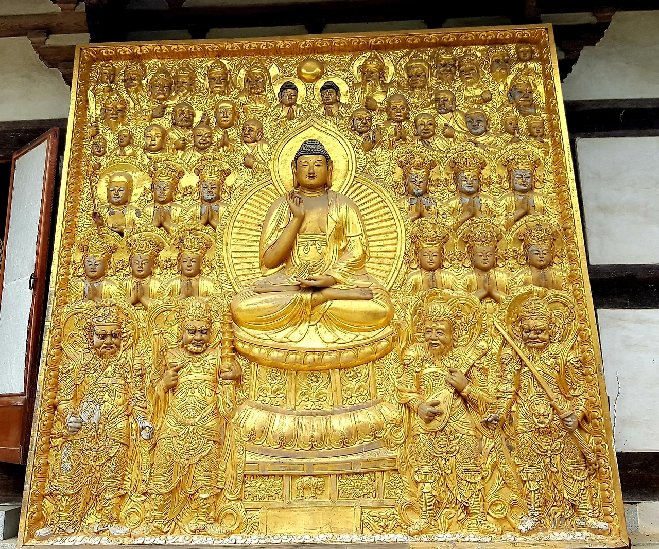 바깥 벽에 황금 벽화도 목각 위에 금빛인가