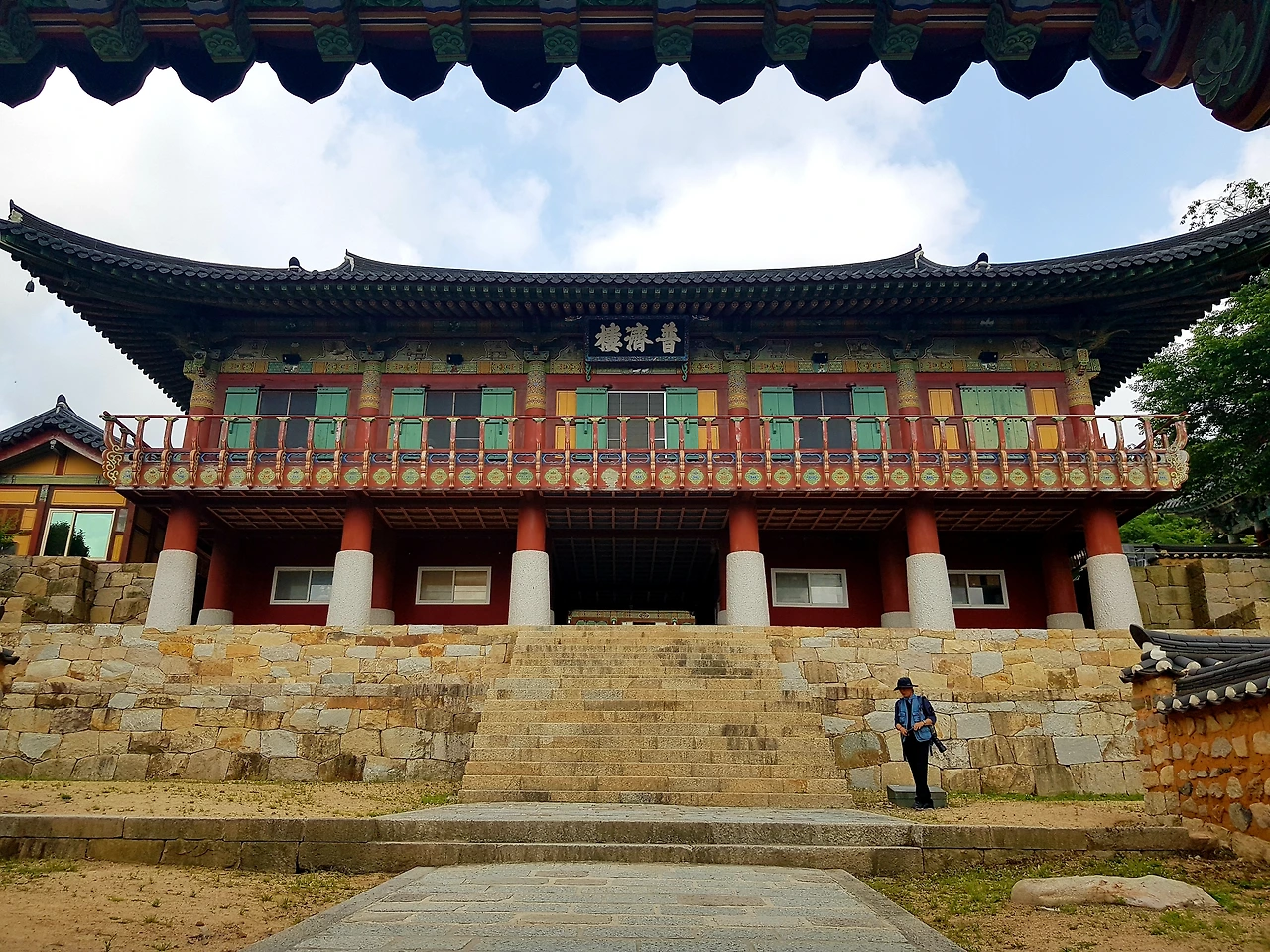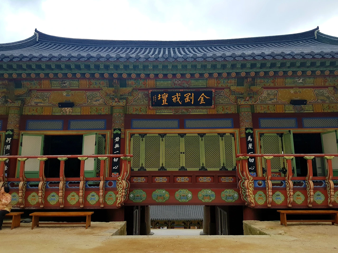 조계문 앞에서 벌써 감동을 해버린 눈은 천왕문, 불이문, 앞쪽은 보제루 뒤쪽은 금강계단인 문을 통과하자 마당을 지나 보물 434호 대웅전이다