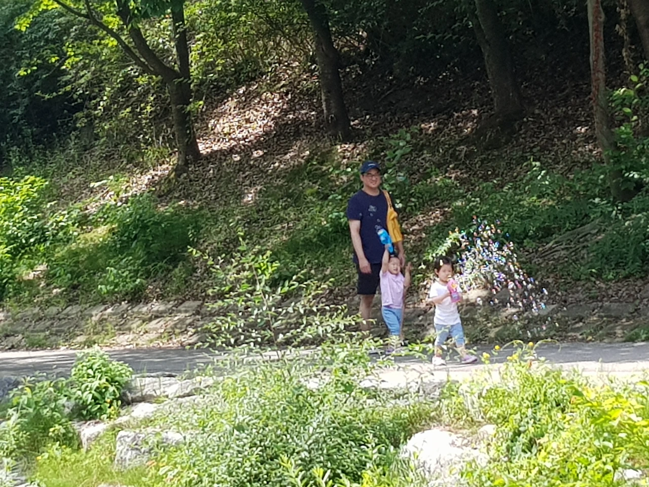 비누바울 날리며 당당히 걷는 아이