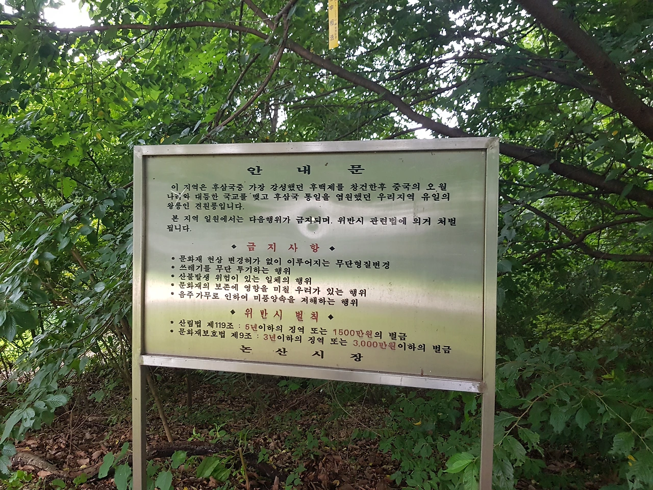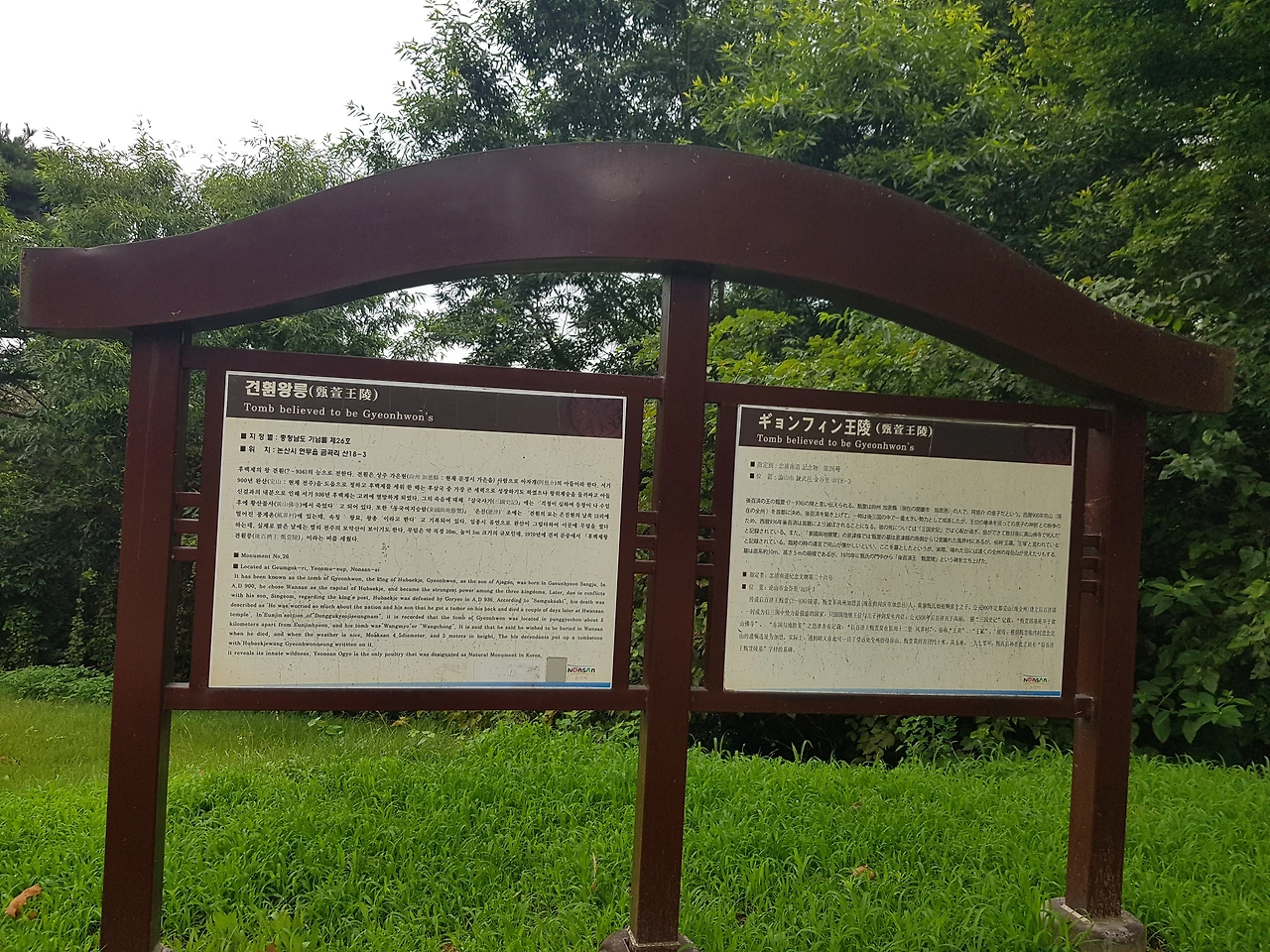 한참을 오르니 커다란 묘가 나타나고 그 앞 안내문이 한글과 영어와 일본어로 쓰였다 일본과 가까이 지냈던 백제이기에 일본어도 쓰여있나 보다 라며 왕릉을 둘러보았다