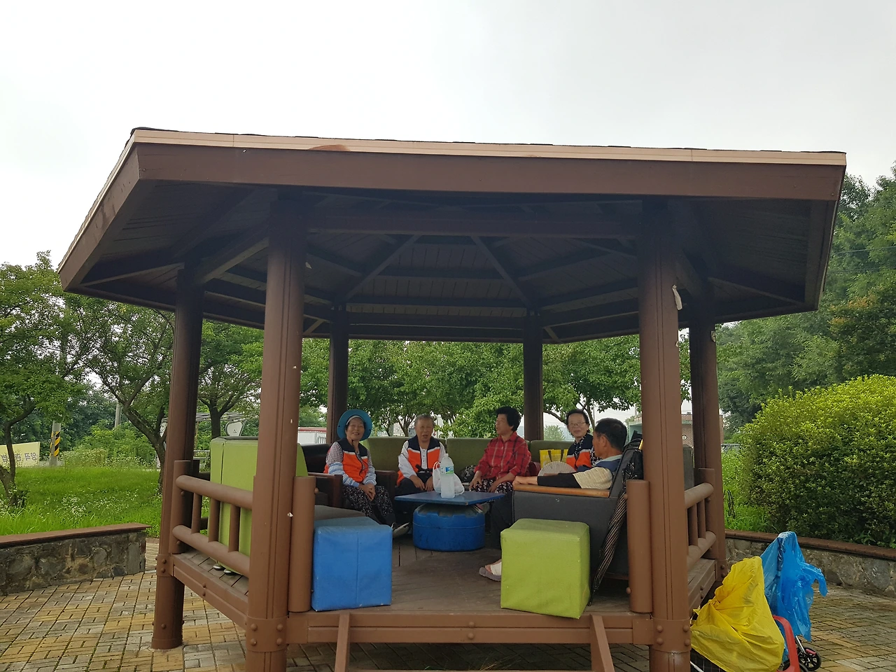 어린 시절 동네 정자가 생각이나 다가가서 여행자의 간식인 초콜릿을 꺼내 하나씩 드리니 ㅡ이런 날도 있느냐ㅡ며 좋아하신다 어르신들과 인사를 나누고 주차장에 오니 주차장 옆 길게 누운 밭에 괭이질을 하고 계신 할아버지가 계셔 날씨가 꽤 뜨거웠는데 일을 하시니 마음이 짠했다