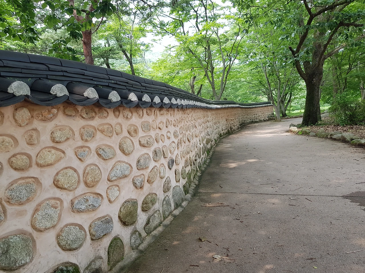 금산사 외벽 담장은 그 고운 선으로 견고하게 자리를 지키고 아름다운 이곳 자연은 더욱 싱그런 푸르름으로 금산사를 아름답게 빛내고 있었다