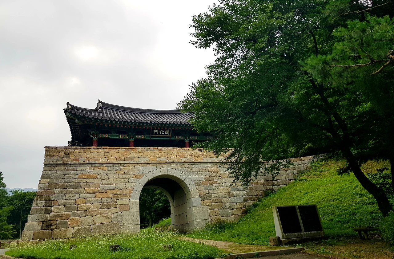 현대적 이미지의 우람한 개화문이 버티고 있어